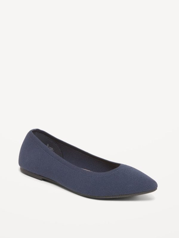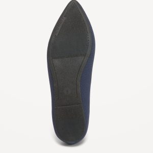 Soft-Knit Pointed-Toe Ballet Flats: soft-knit upper, pointed toe, quilted faux-suede foot bed, textured thermoplastic rubber outsole, 1/4″ heel, #795204