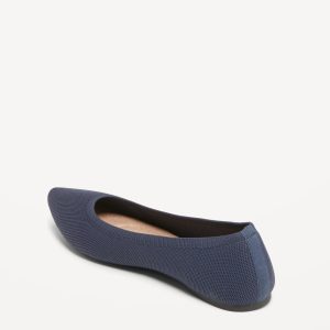 Soft-Knit Pointed-Toe Ballet Flats: soft-knit upper, pointed toe, quilted faux-suede foot bed, textured thermoplastic rubber outsole, 1/4″ heel, #795204