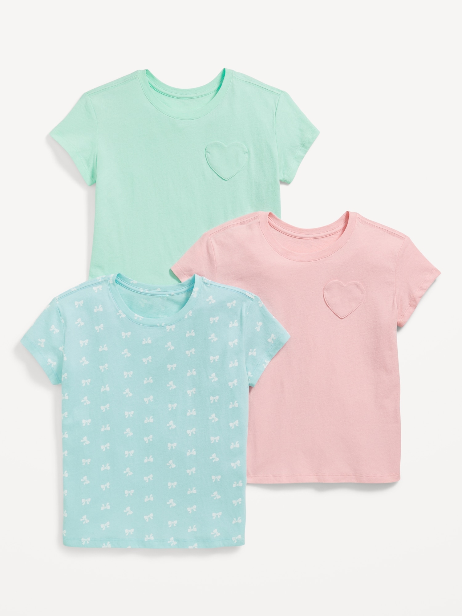 Softest Short-Sleeve T-Shirt 3-Pack for Girls: crew neck, short sleeves, heart patch pocket at chest in select colors, online exclusive, #766964