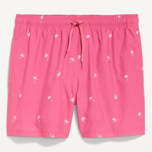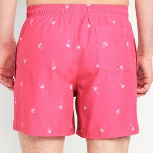 Solid Swim Trunks — 5-inch inseam: elastic-drawstring waistband, on-seam pockets, back pocket with grommet drain, built-in mesh briefs, pull-on style, all-over cocktail print, #766289