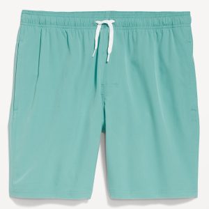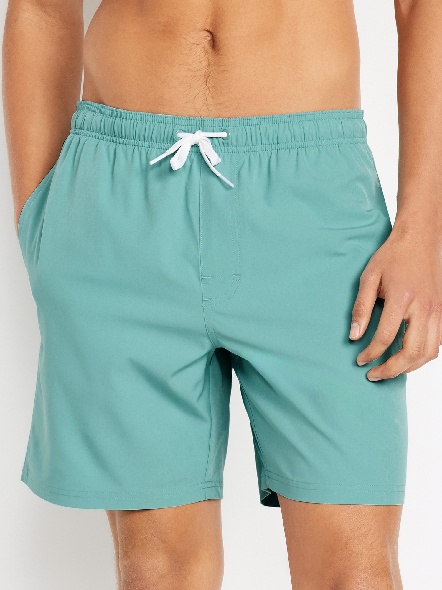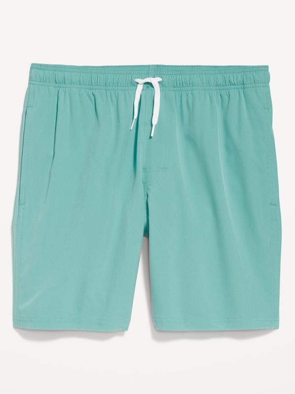 Solid Swim Trunks — 7-inch inseam: elastic-drawstring waistband, on-seam pockets, back patch pocket with grommet drain, built-in mesh briefs, pull-on style, #766290