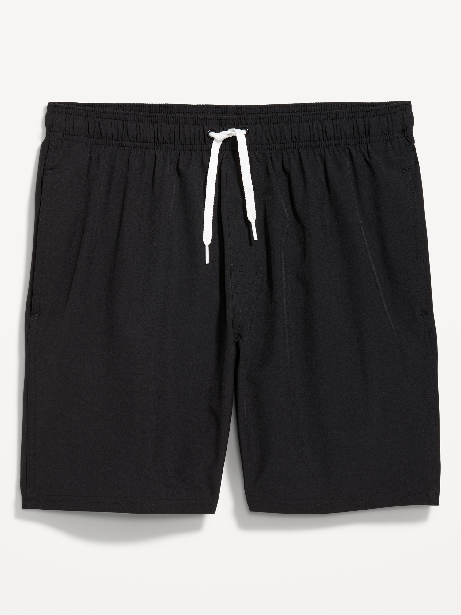Solid Swim Trunks — 7-inch inseam: elastic-drawstring waistband, on-seam pockets, back patch pocket with grommet drain, built-in mesh briefs, pull-on style, #766290