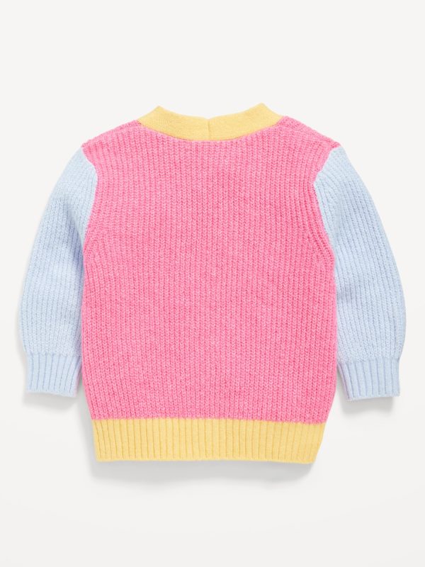 SoSoft Color-Block Cardigan Sweater for Baby: v neck, long sleeves, three-button placket, color block, #789180