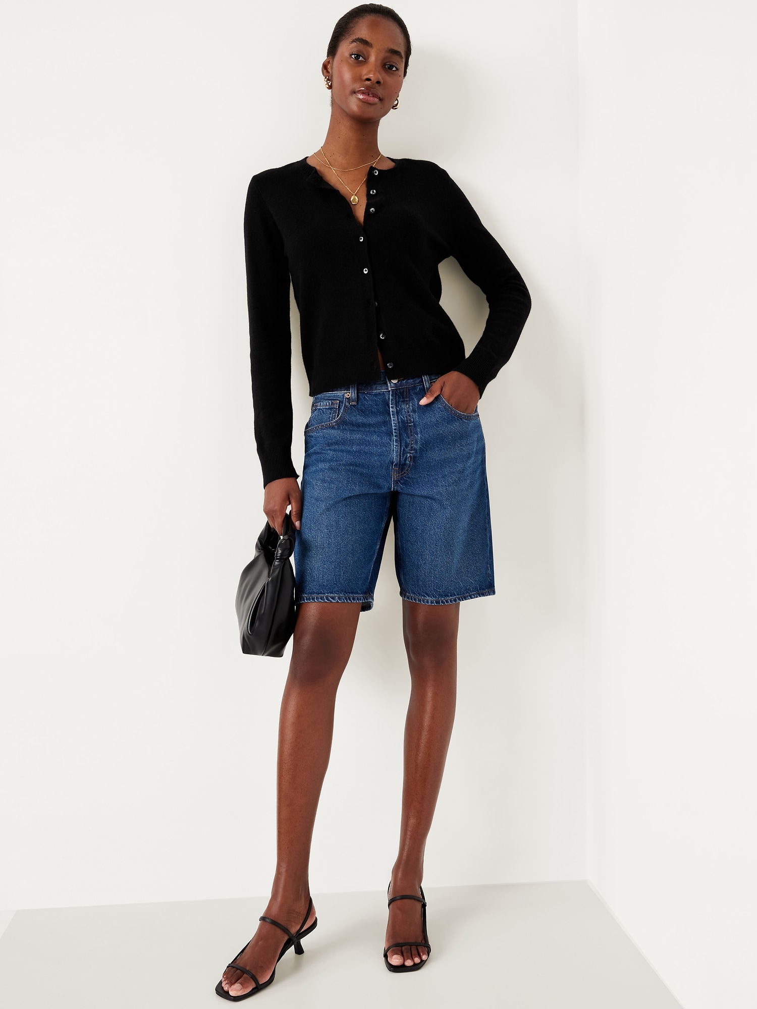 SoSoft Cropped Cardigan Sweater: Featuring SoSoft. Literally “so soft” it’s got cashmere jealous.crew neck, long sleeves, full-button front, #785112