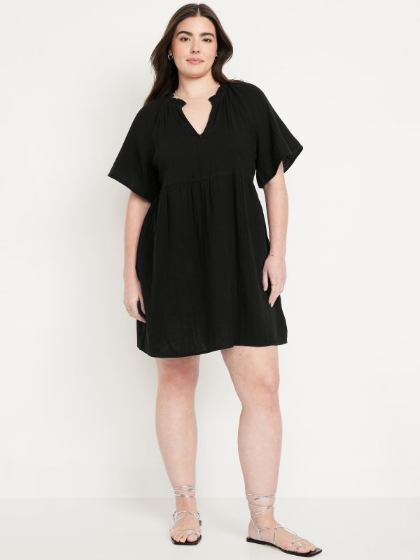 Split-Neck Crinkle Gauze Mini Swing Dress