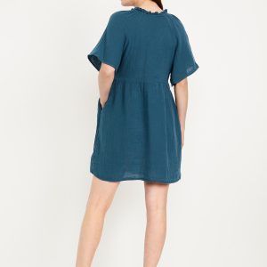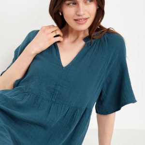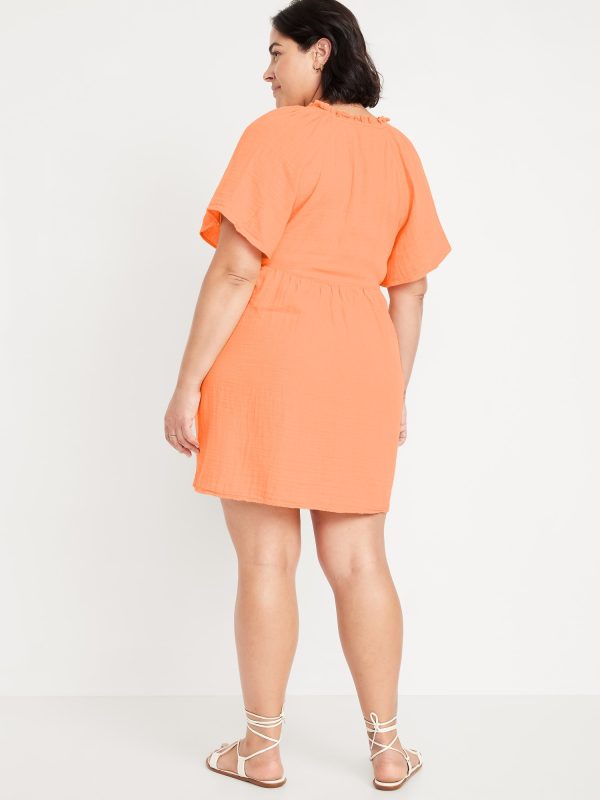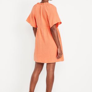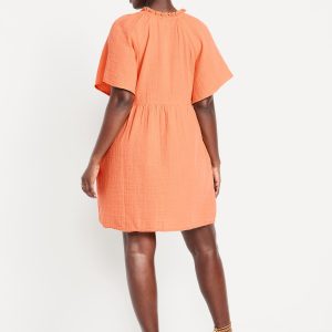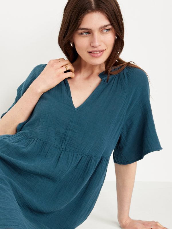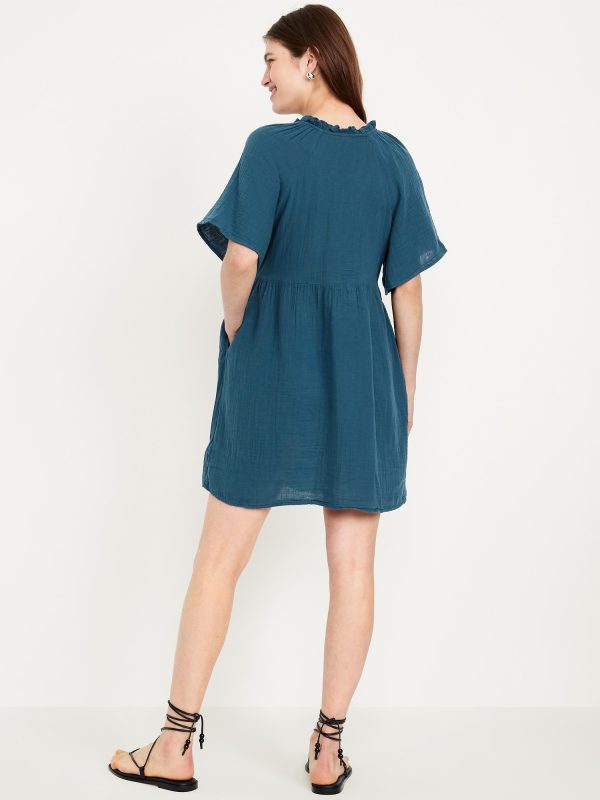 Split-Neck Crinkle Gauze Mini Swing Dress