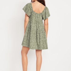 Split-Neck Crinkle Gauze Mini Swing Dress: A light, rippled fabric that’s begging to be beachside.ruffled split v-neck, short flutter sleeves, hip pockets, shirred detail, mini length, #705169