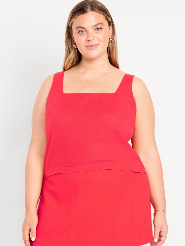 Square-Neck Linen-Blend Crop Tank Top: square neck, sleeveless, darted bust, #756733