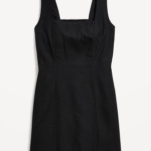 Square-Neck Linen-Blend Mini Dress