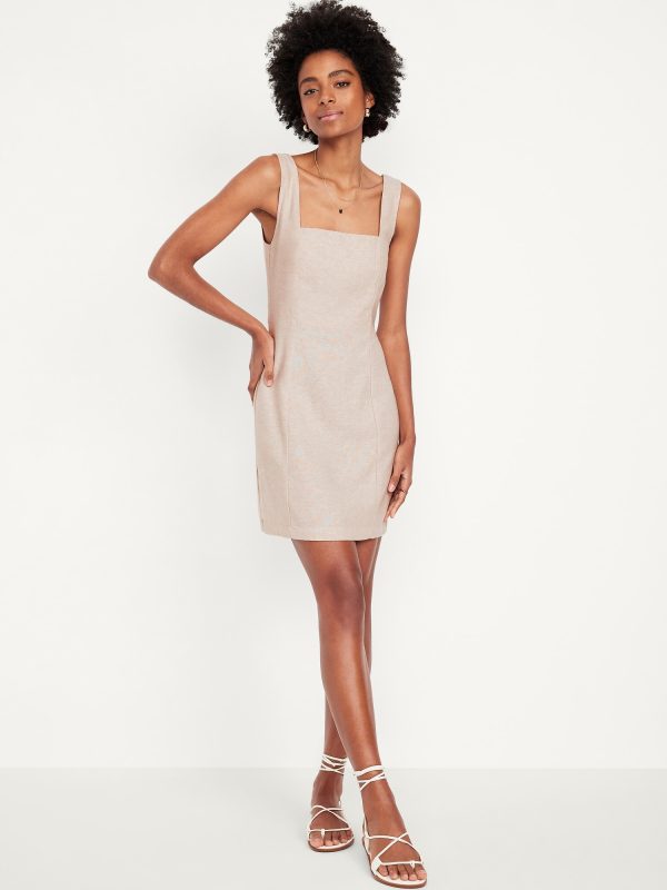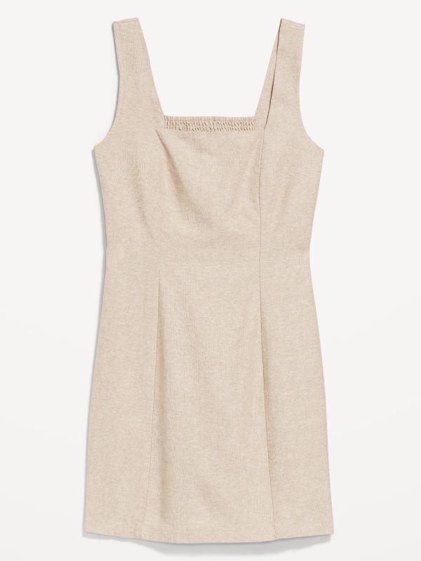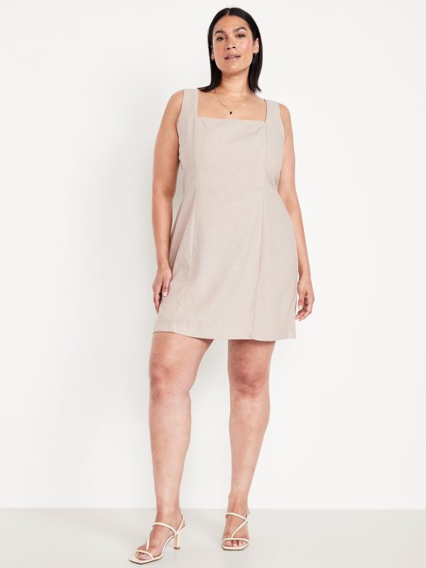 Square-Neck Linen-Blend Mini Dress