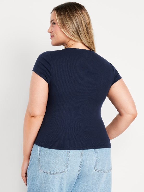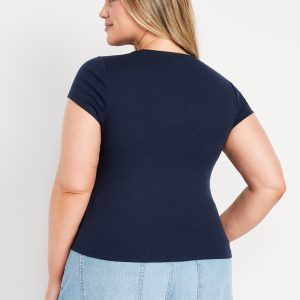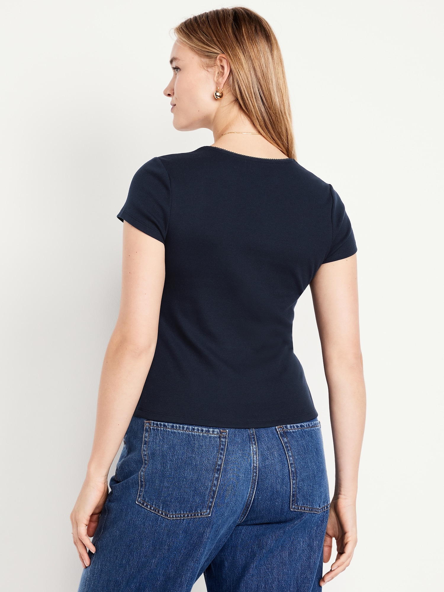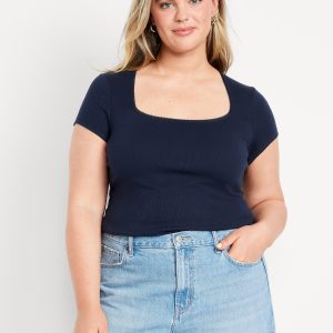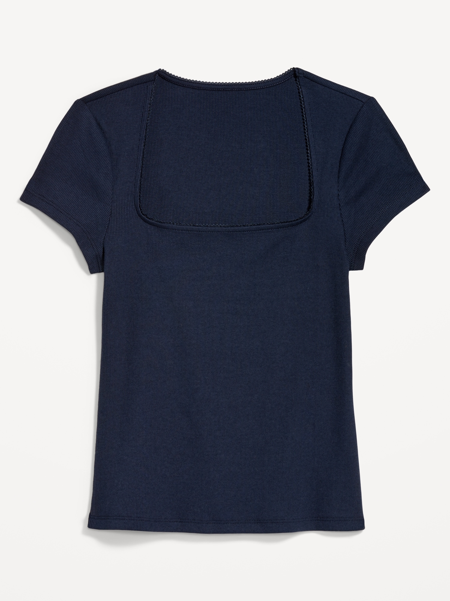Square-Neck Ribbed T-Shirt: square neck, short sleeves, #749343