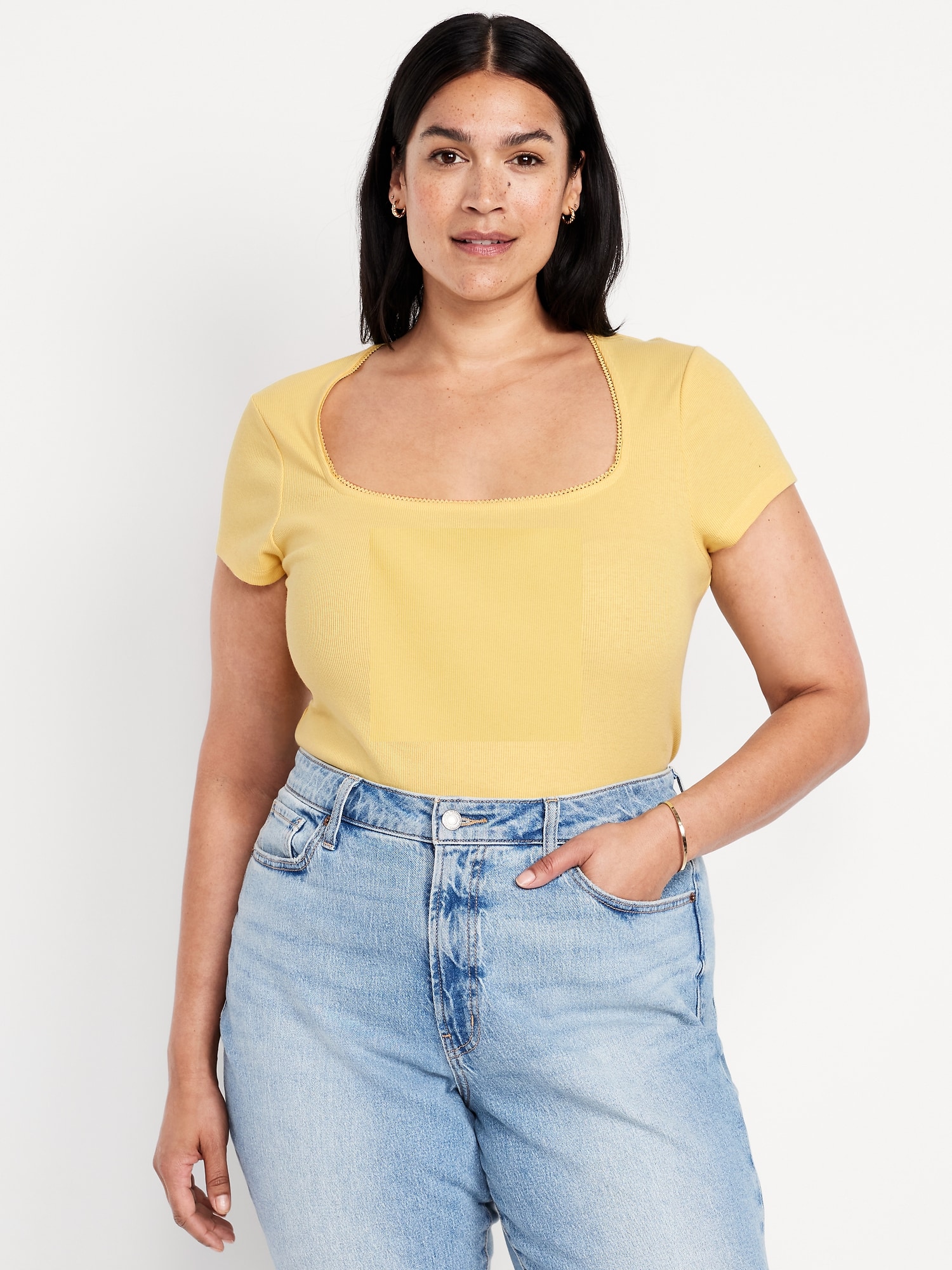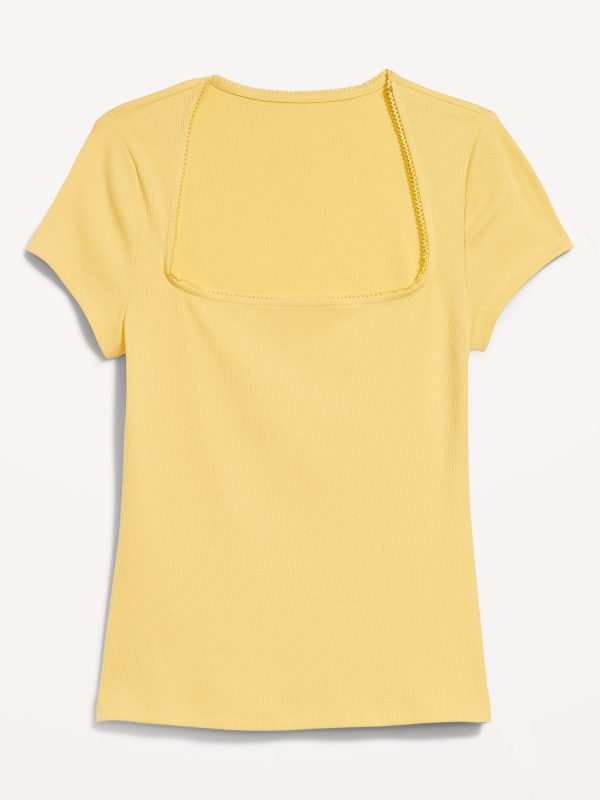Square-Neck Ribbed T-Shirt: square neck, short sleeves, #749343