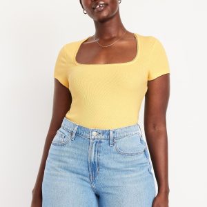 Square-Neck Ribbed T-Shirt