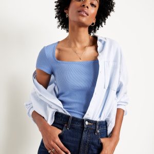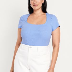 Square-Neck Ribbed T-Shirt