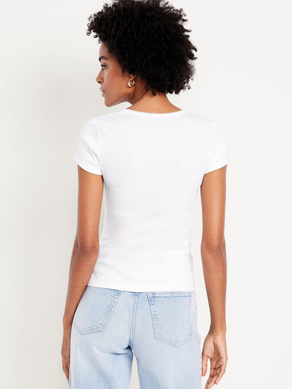 Square-Neck Ribbed T-Shirt: square neck, short sleeves, #749343