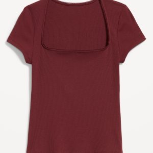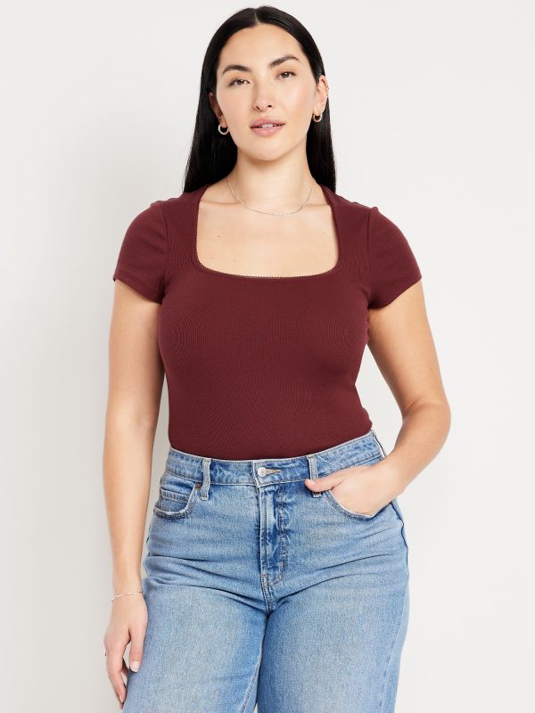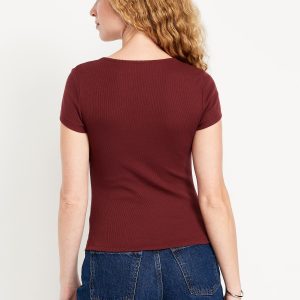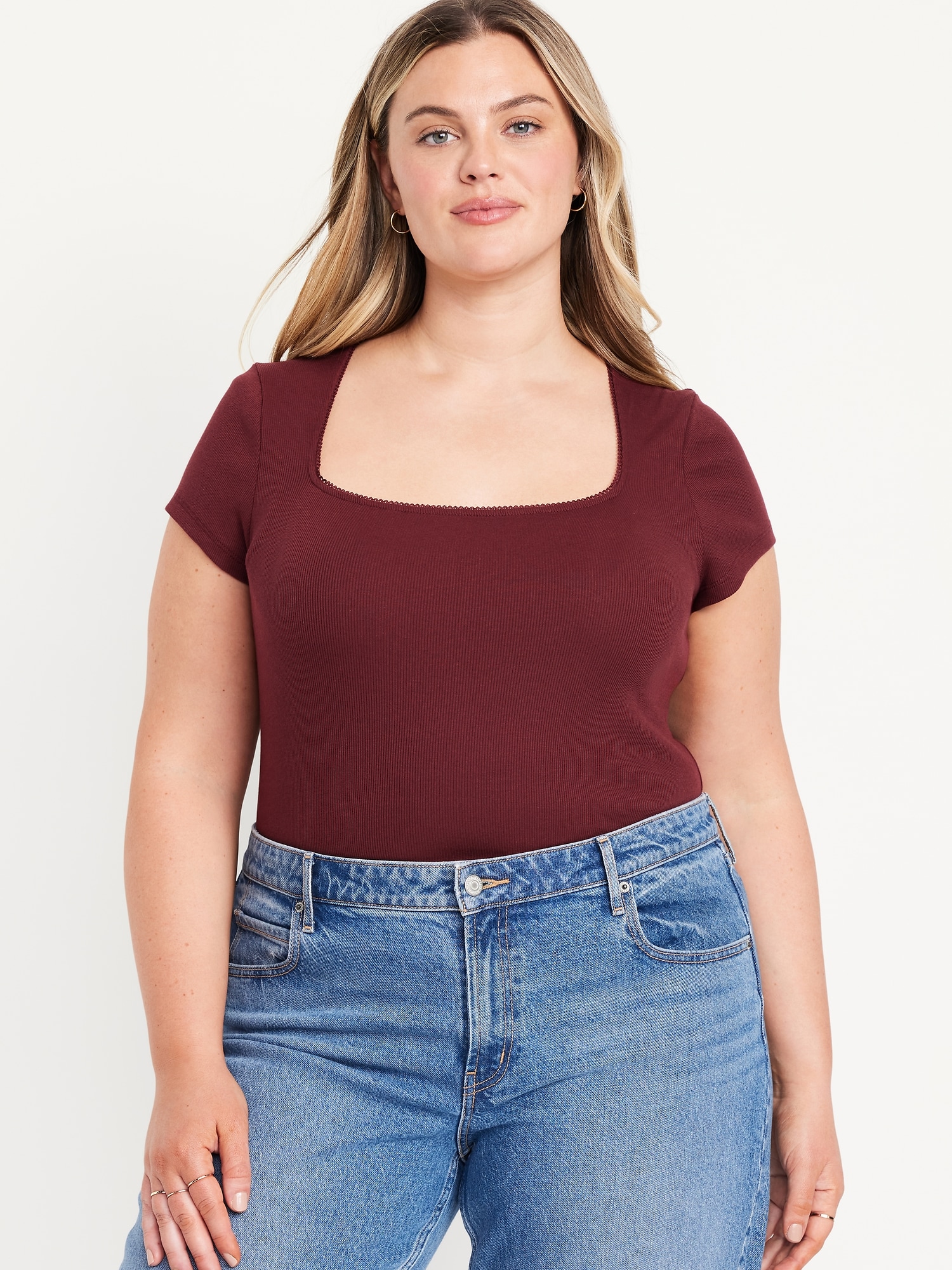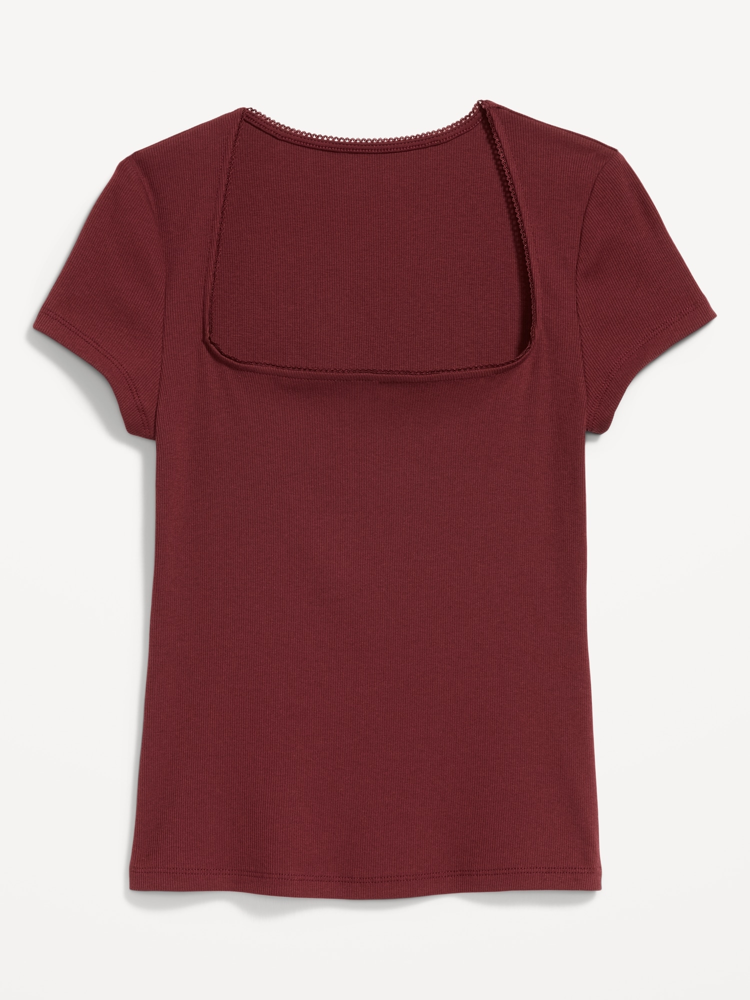 Square-Neck Ribbed T-Shirt: square neck, short sleeves, #749343