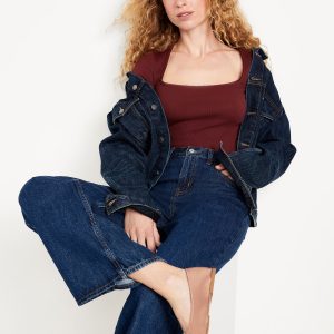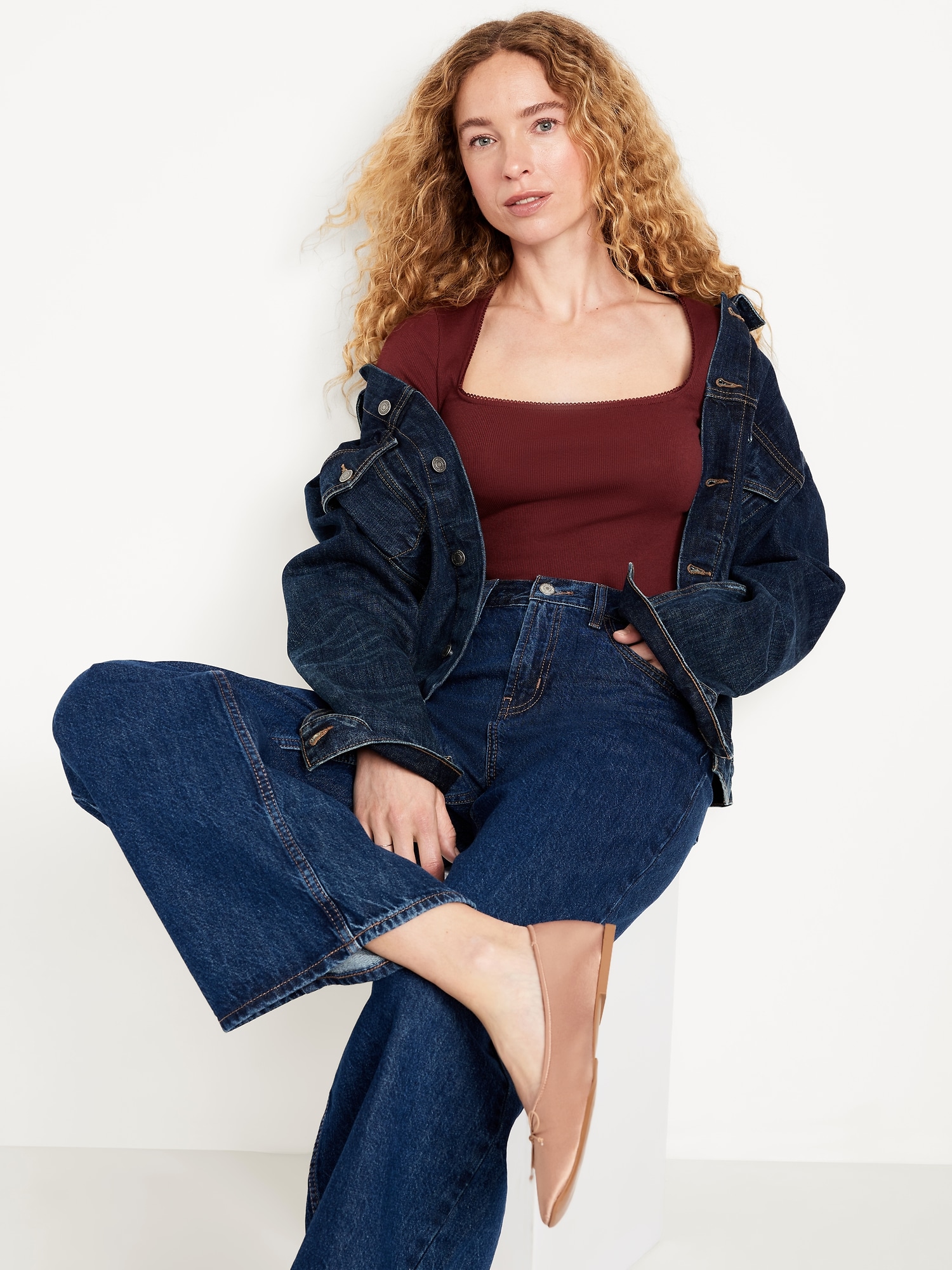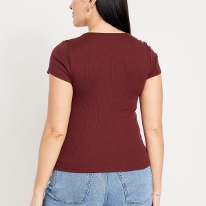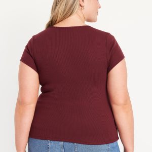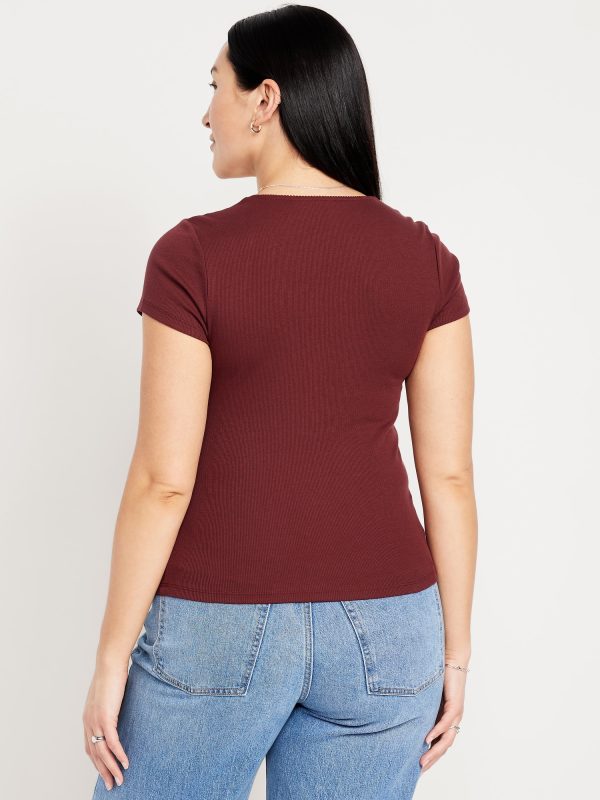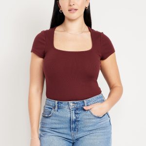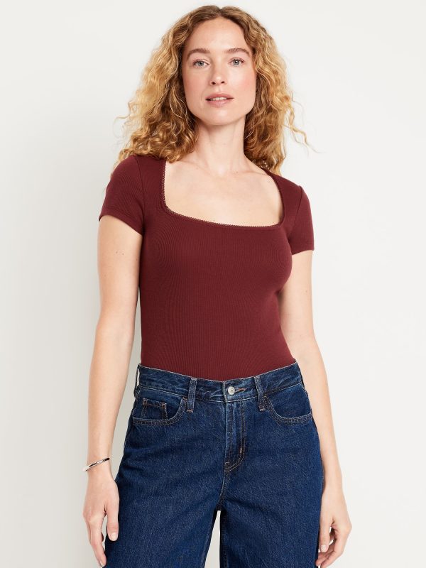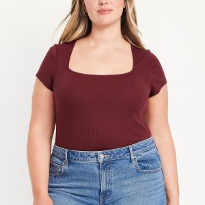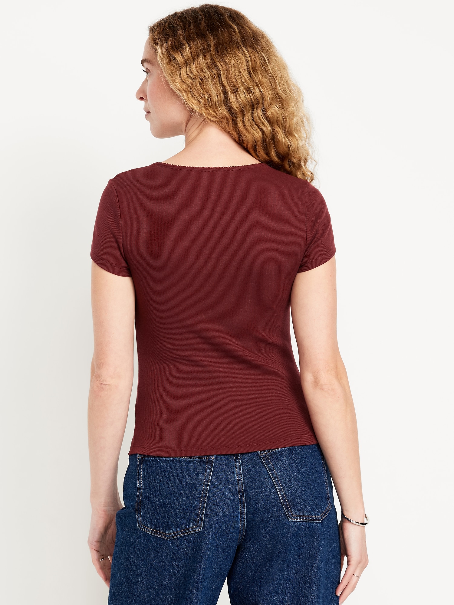 Square-Neck Ribbed T-Shirt: square neck, short sleeves, #749343