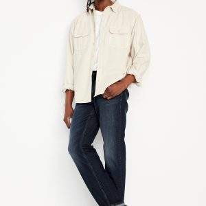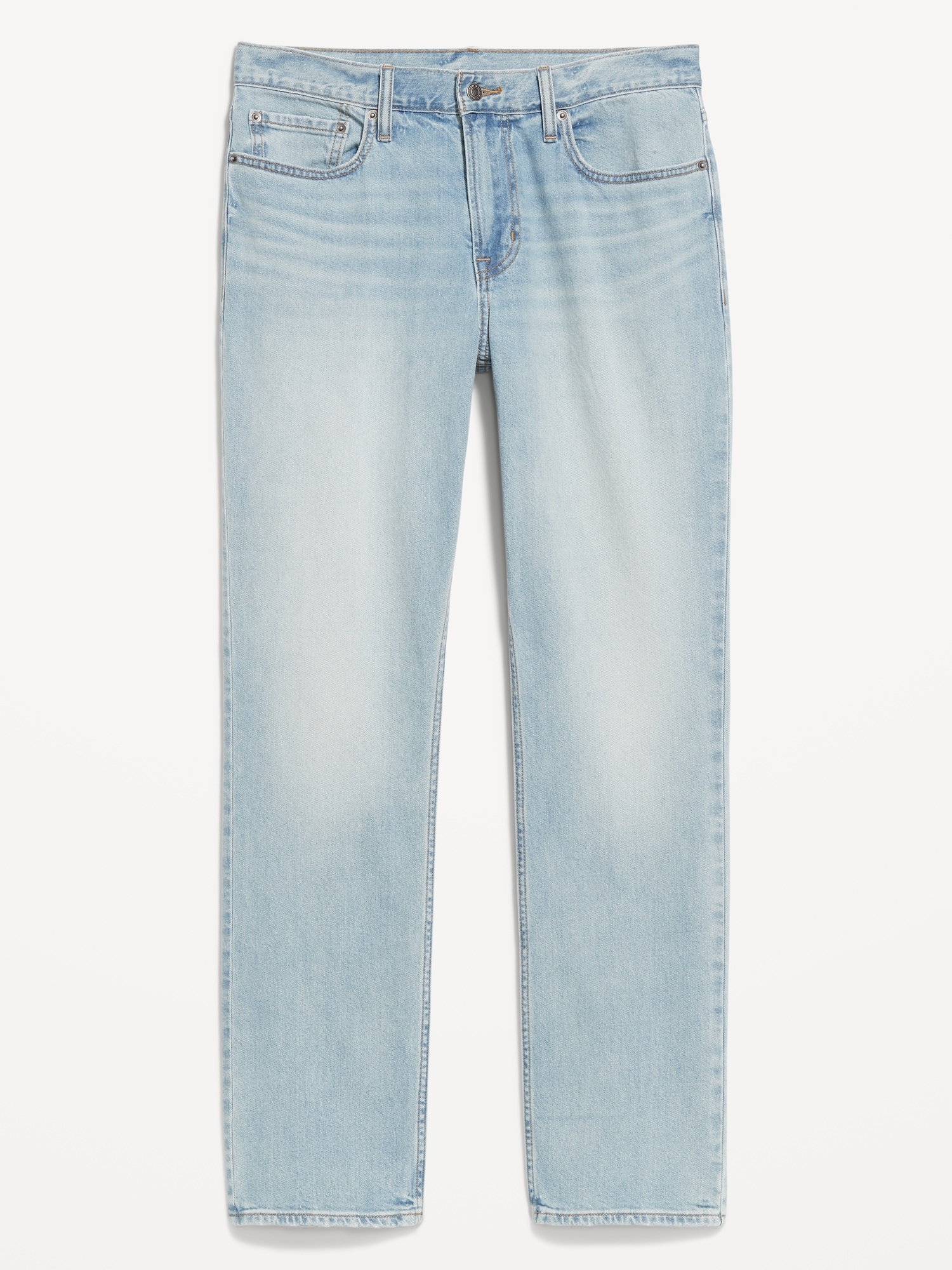 Straight Built-In Flex Jeans: button front, belt loops, zip fly, front scoop pockets, back patch pockets, fading and whiskering, #796708