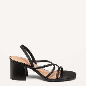Strappy Block Heel Sandals: faux-leather upper, elastic slingback strap, block heel, #663992