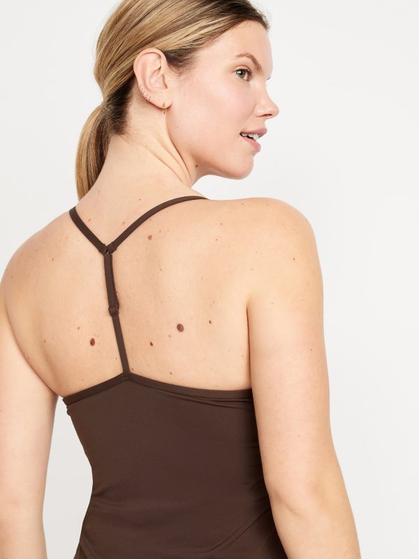 StudioSmooth Racerback Support Top: Featuring StudioSmooth. Buttery soft and breathable, with a barely-there feel.v-neck, adjustable racerback strap, shelf bra with removable pads, go-dry wicks moisture, breathable, #785415