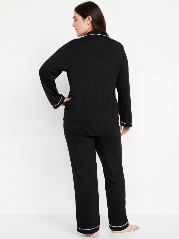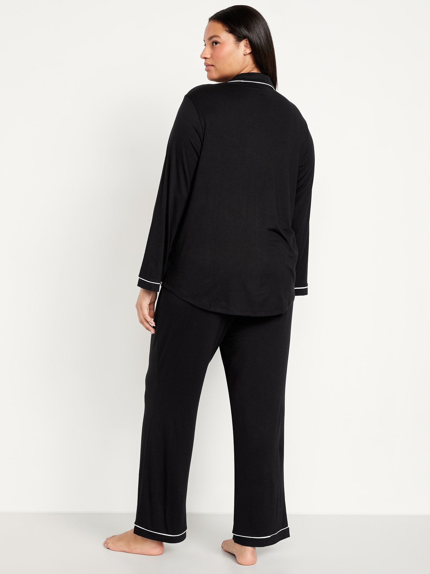 Sunday Sleep Knit Jersey Pant Set: Knit jersey so unbelievably soft and stretchy.set includes pajama shirt and matching bottoms, spread collar, long sleeves, patch chest pocket, full-button front, elastic-waist pajama pants, decorative button fly, #422082