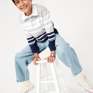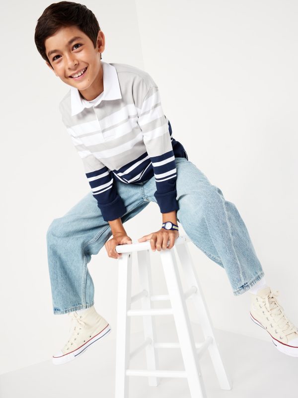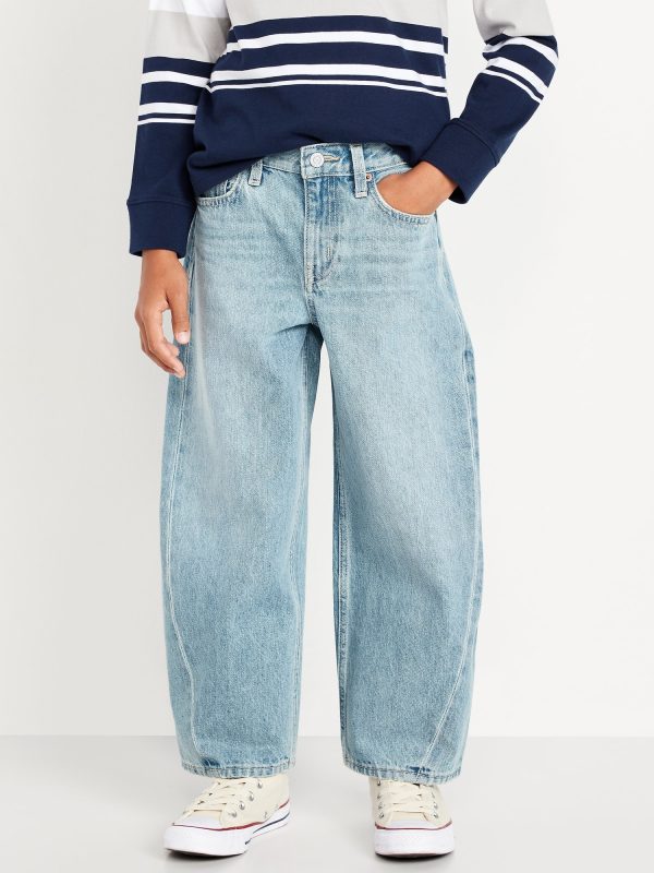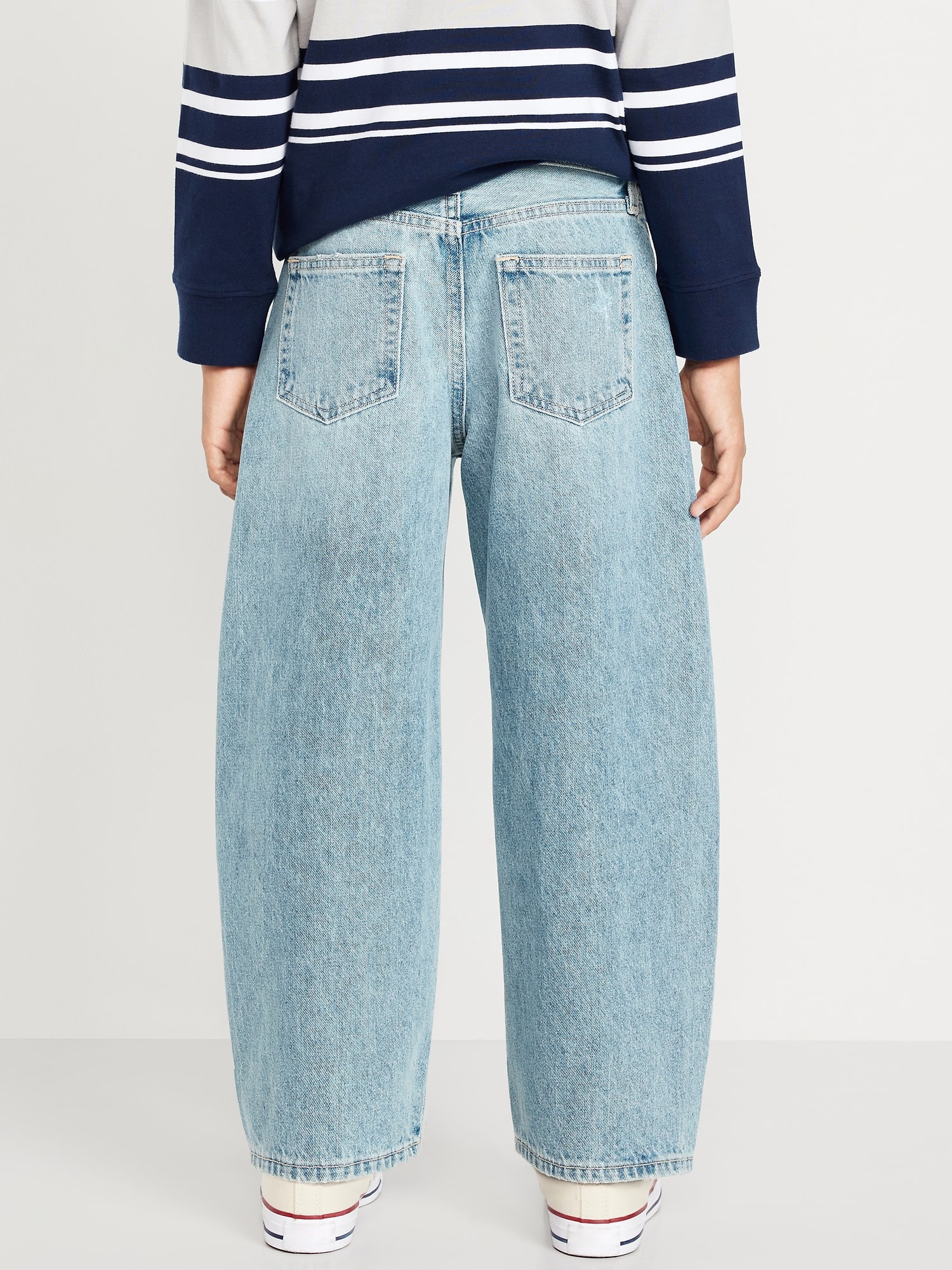 Super Baggy Barrel-Leg Jeans for Boys: interior adjustable waistband, sizes 5-8 snap-button closure, regular button closure sizes 10-20, zip fly, scoop pockets and coin pocket, patch pockets at back, #805569