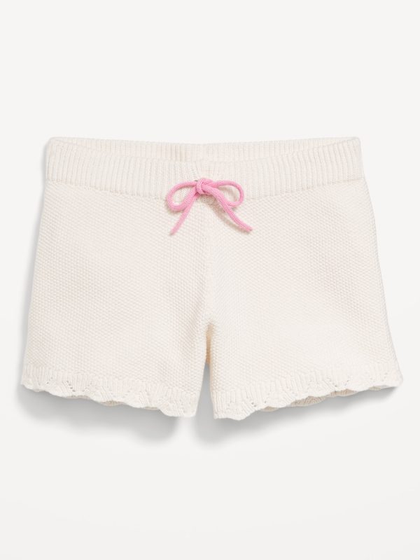 Sweater-Knit Embroidered Shorts for Girls: elasticized waistband, functional drawstring, all-over embroidery, crochet knit, #728868