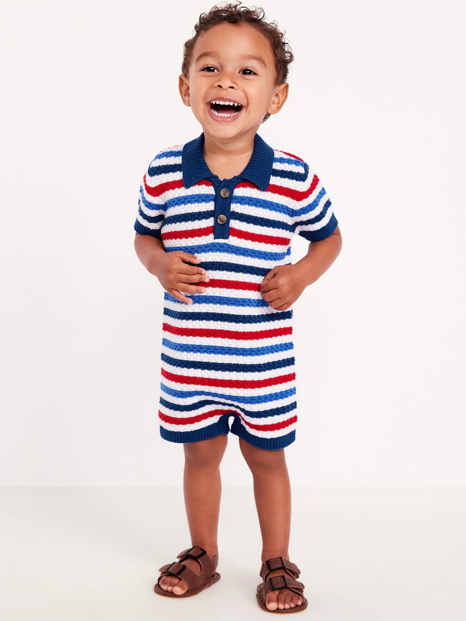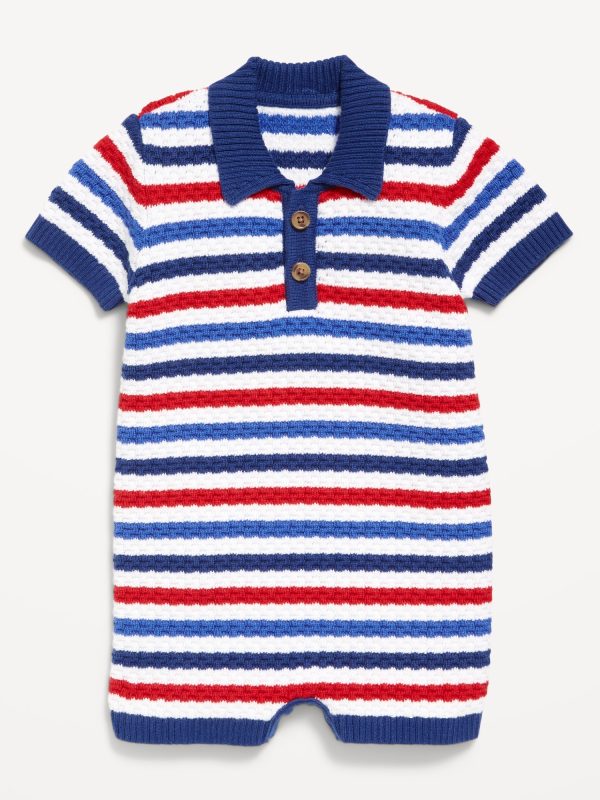 Sweater-Knit Polo One-Piece Romper for Baby