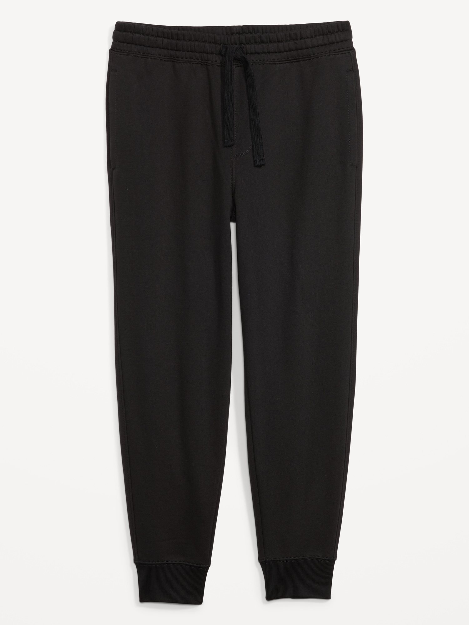 Tapered Jogger Sweatpants: elastic-drawstring waist, faux fly, on-seam pockets, single back patch pocket, rib-knit cuffs, pull-on style, #470325