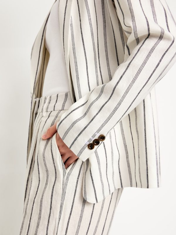 Taylor Fitted Linen-Blend Suit Blazer: notched lapel, long sleeves, buttoned cuffs, single-button front, front pockets, #663788