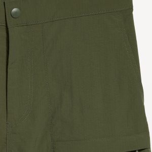 Tech Hybrid Cargo Shorts — 7-inch inseam: snap front, elasticized back waistband, zip fly, diagonal front pockets, hidden zip pocket, back right welt pocket with hidden snap, #695568