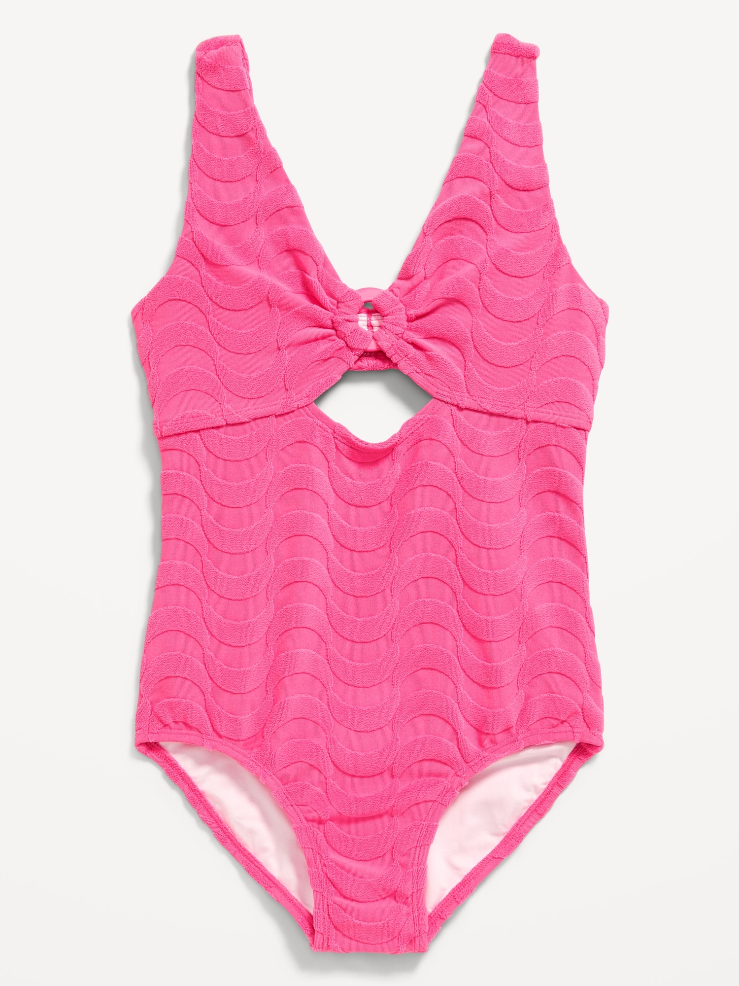 Textured Cutout One-Piece Swimsuit for Girls: deep v neck, wide shoulder straps, keyhole cutout at chest, cutout along back, textured pattern, #761928