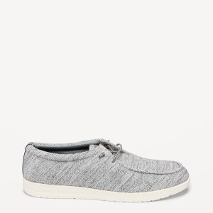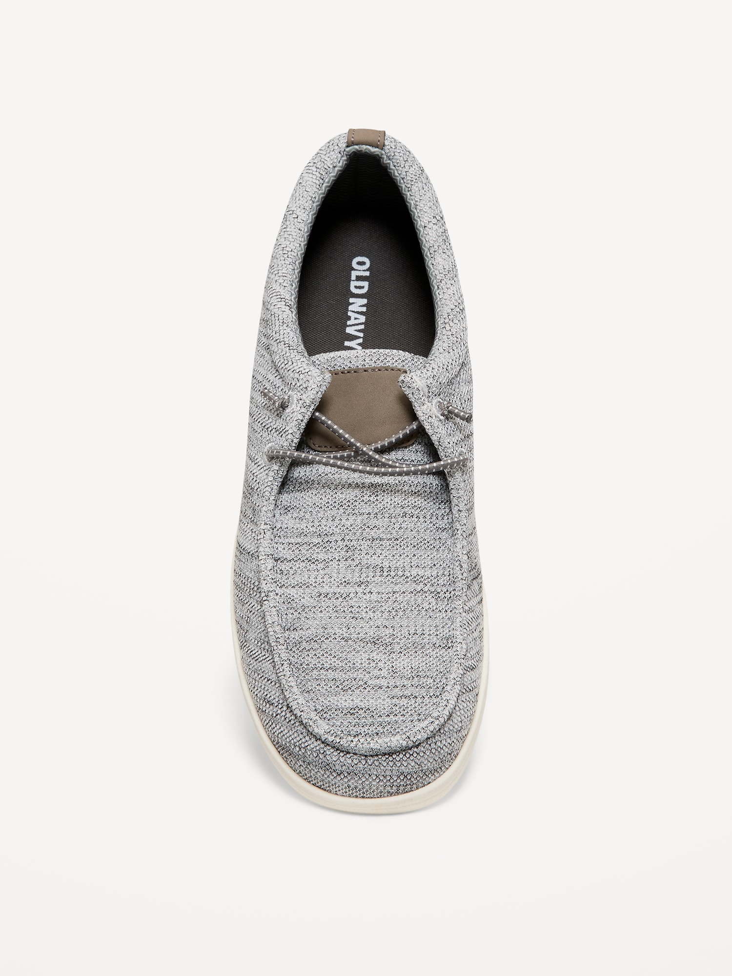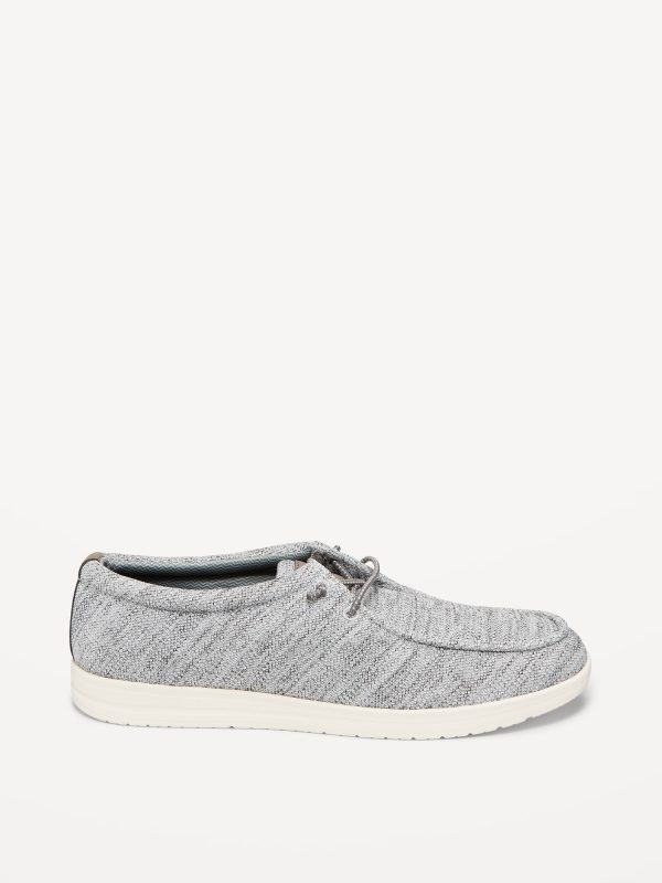 Textured Knit Loafers: decorative lace front, soft-knit upper, contrasting synthetic midsole, textured outsole, easy slip-on style, #684902