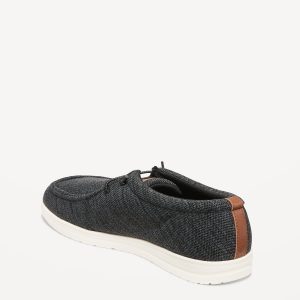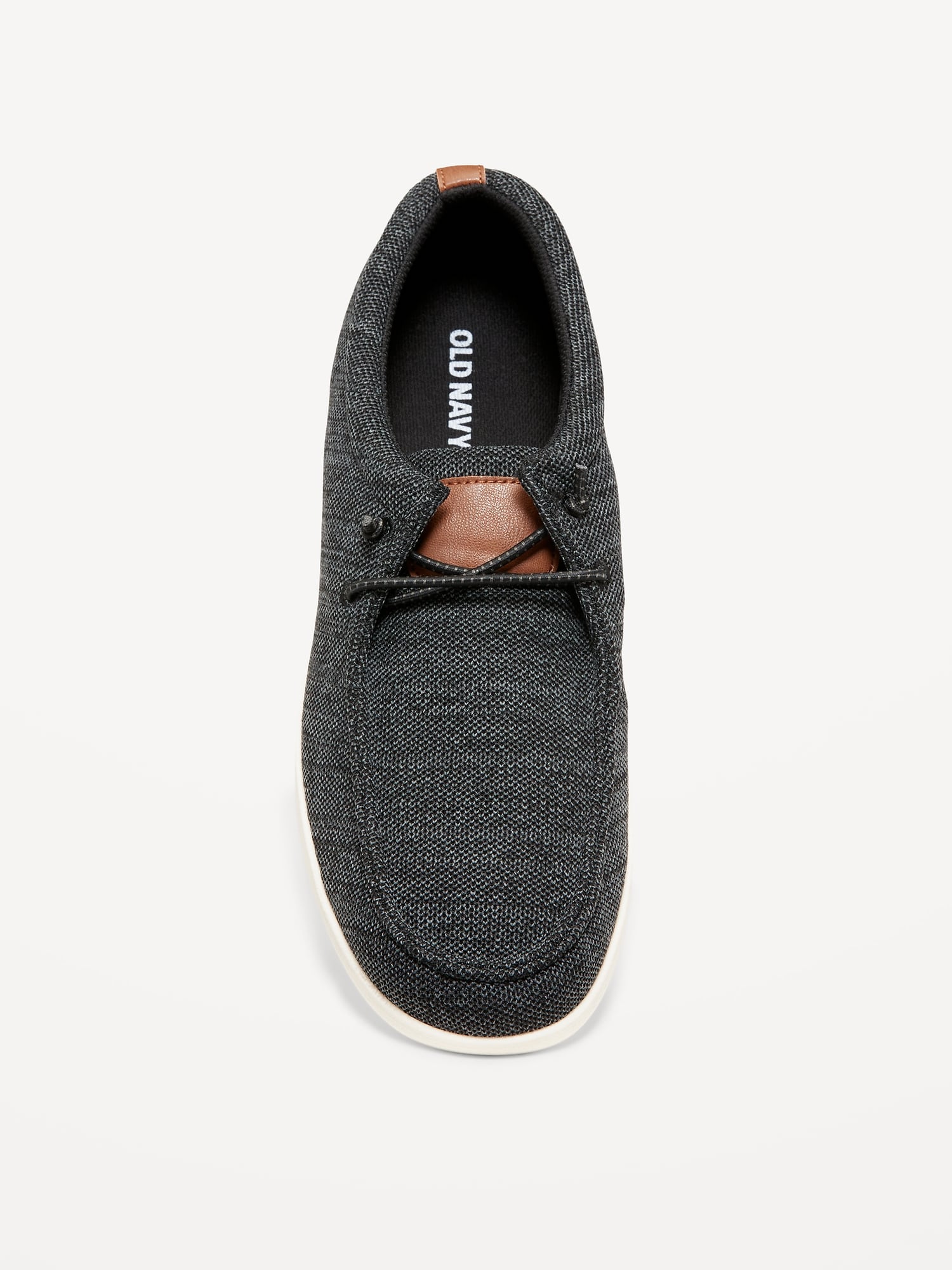 Textured Knit Loafers: decorative lace front, soft-knit upper, contrasting synthetic midsole, textured outsole, easy slip-on style, #684902