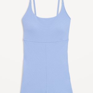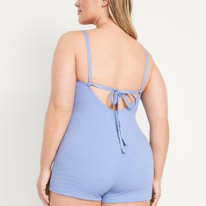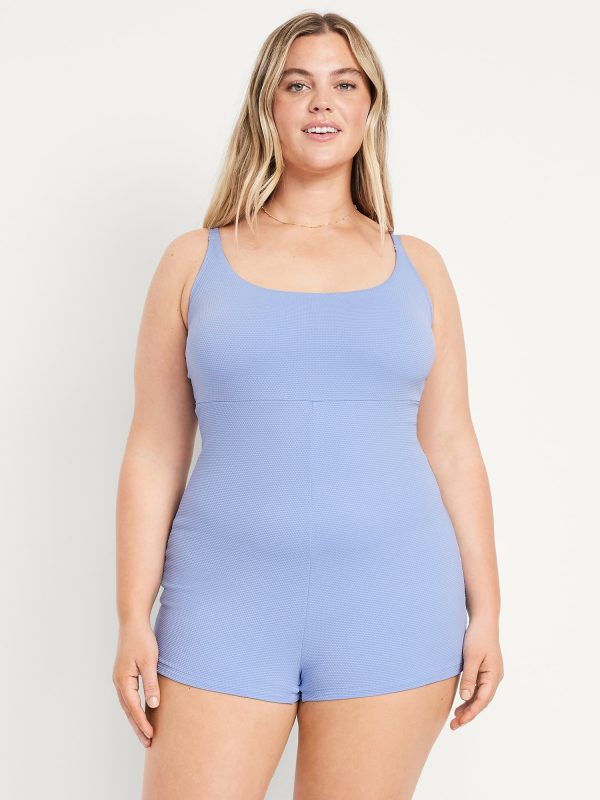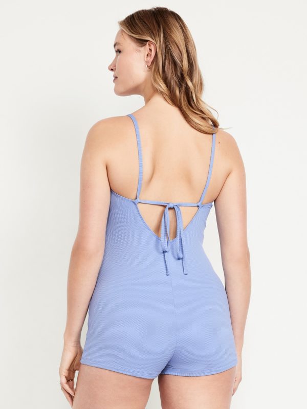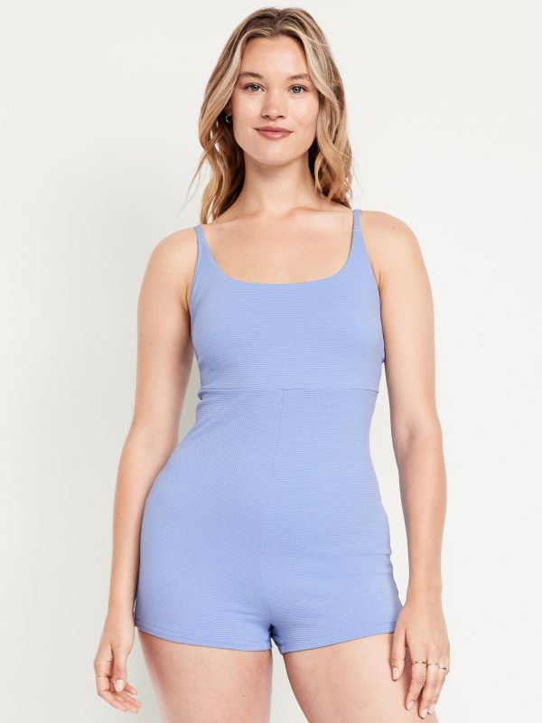 Textured Swim Romper — 2.5-inch inseam: scoop neck, spaghetti straps, seamed waist, #892291