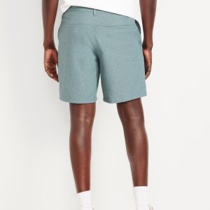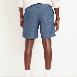 Textured Tech Chino Shorts — 8-inch inseam: Wrinkle free, with cooling tech and four-way stretch.snap front, belt loops, zip fly, front pockets, single back welt pocket, left stash pocket, #763602
