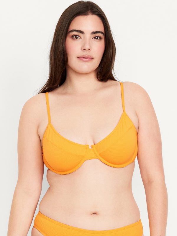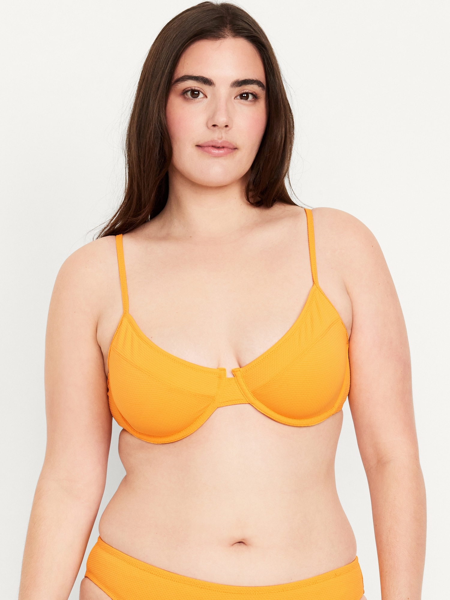 Textured Underwire Balconette Swim Top: adjustable straps, removable cups, underwire and side-boning support, adjustable hook-and-eye at back, full lining, #680791