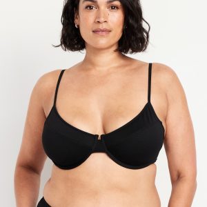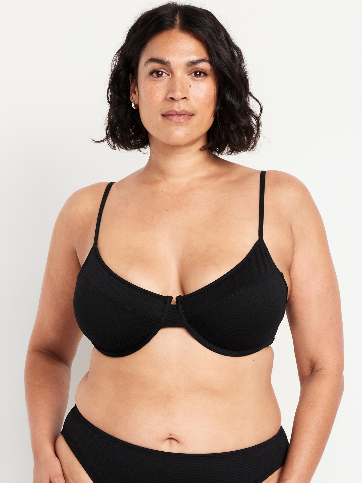 Textured Underwire Balconette Swim Top: adjustable straps, removable cups, underwire and side-boning support, adjustable hook-and-eye at back, full lining, #680791
