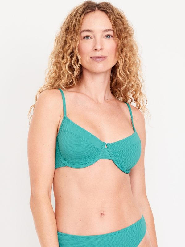 Textured Underwire Balconette Swim Top: adjustable straps, removable cups, underwire and side-boning support, adjustable hook-and-eye at back, full lining, #680791