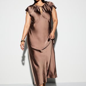 The Occasion by Old Navy Flutter-Sleeve Keyhole Satin Maxi Dress
