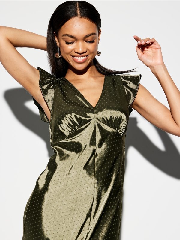 The Occasion by Old Navy Flutter-Sleeve Satin Maxi Dress: New! Special dresses and sets, made to make an entrance.deep v-neck, flutter-trim arm openings, seamed empire waist, center back elastic for comfort, front center slit, shirred detail, subtle tonal dots for a more dressed-up look, for parties, proms, graduations, weddings — these looks love an RSVP, #705416