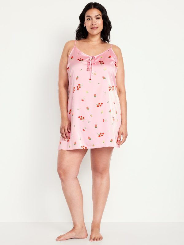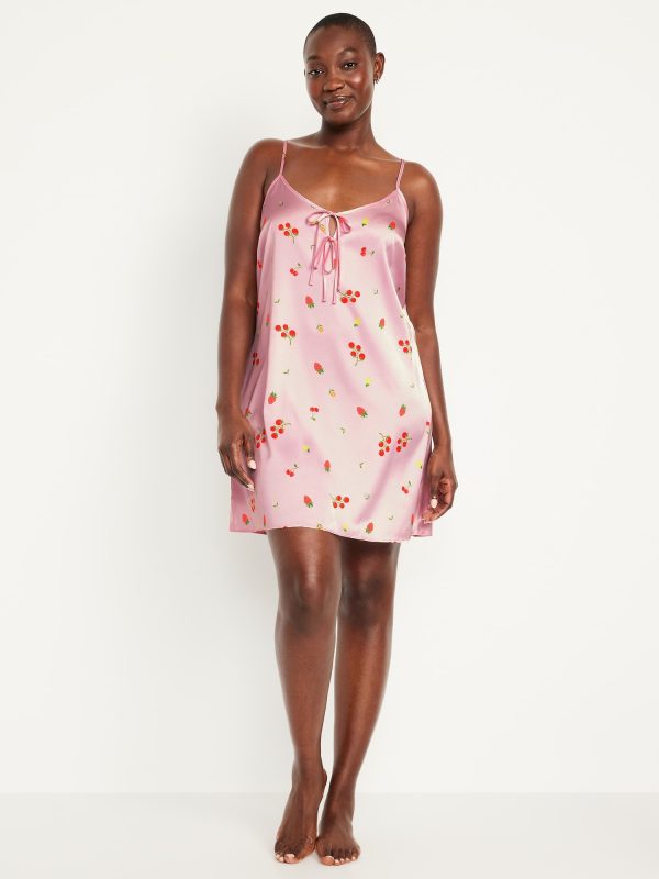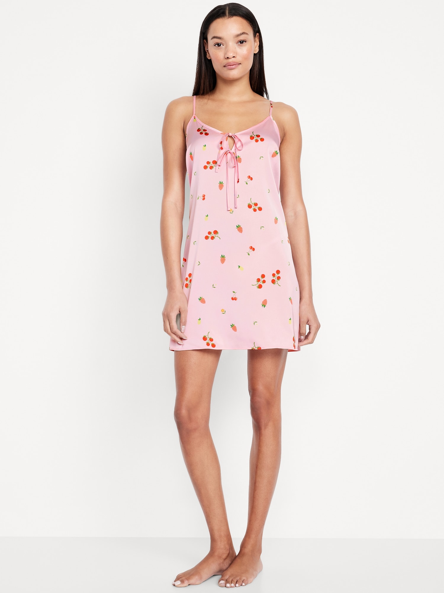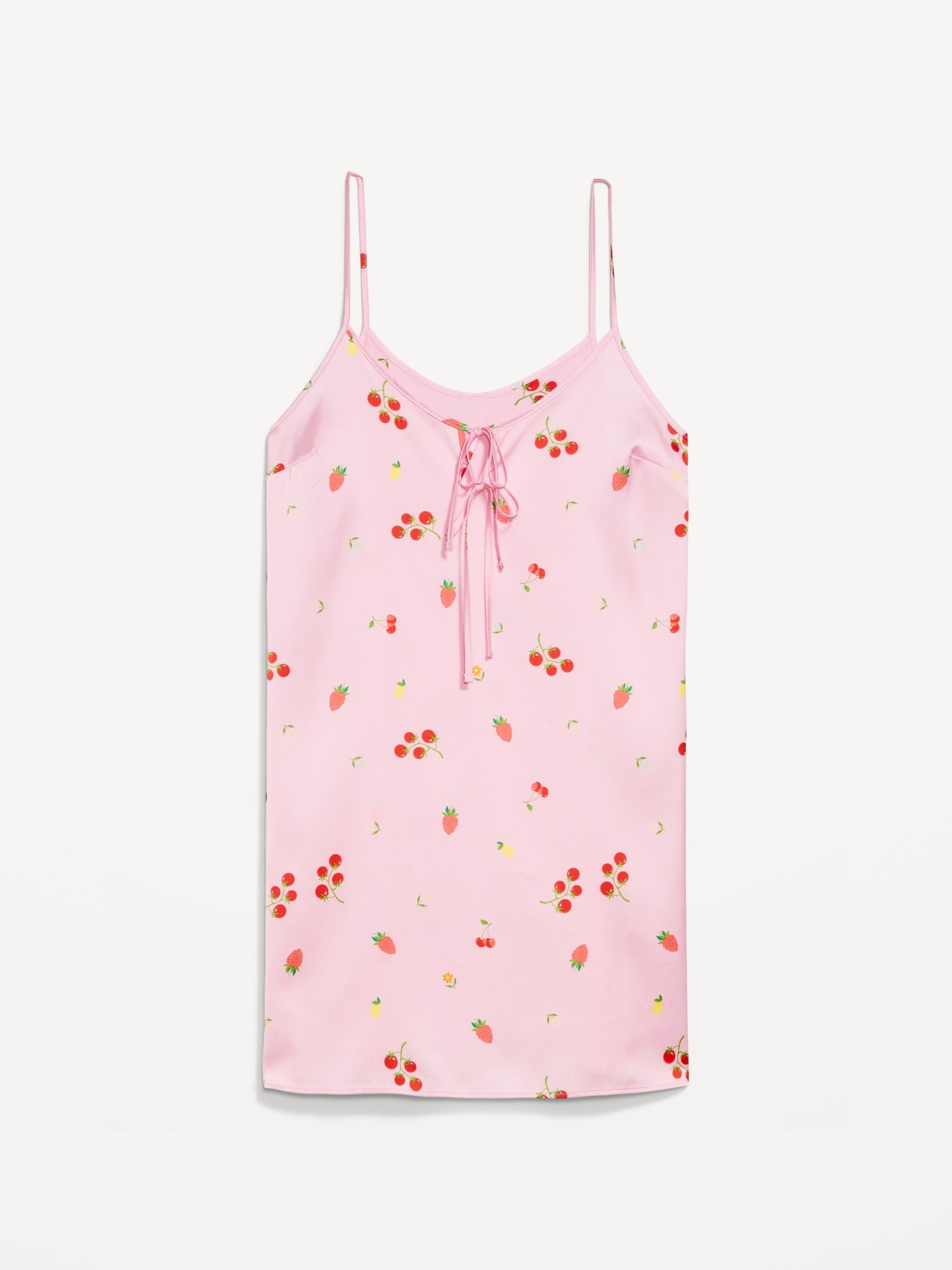 Tie-Front Satin Nightgown: tie-front scoop neck, spaghetti straps, keyhole opening at center front, darted bust, #766746
