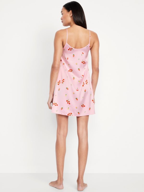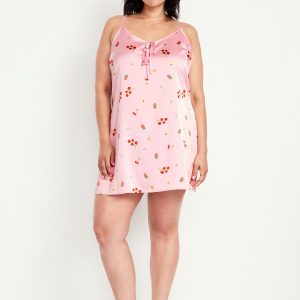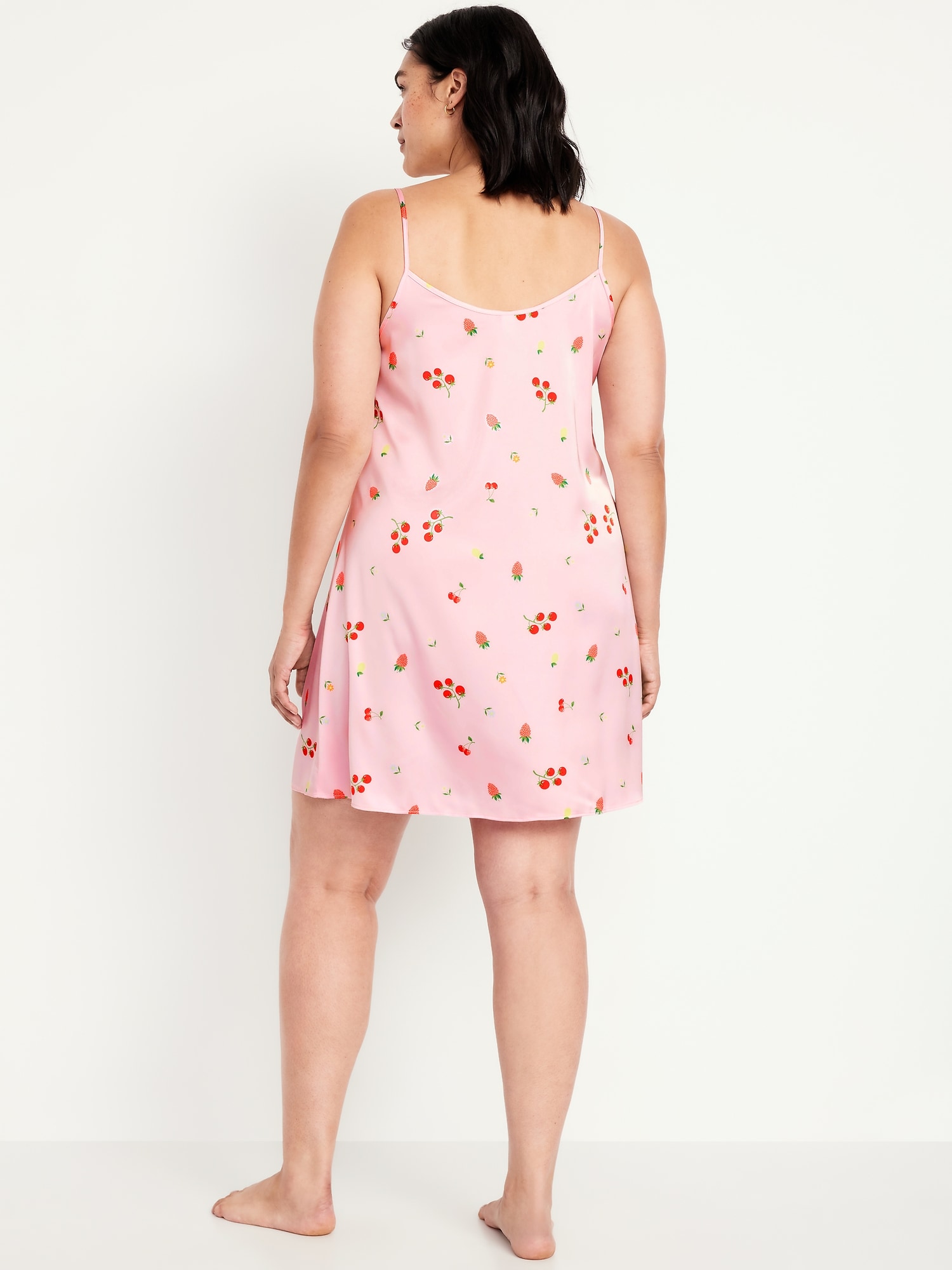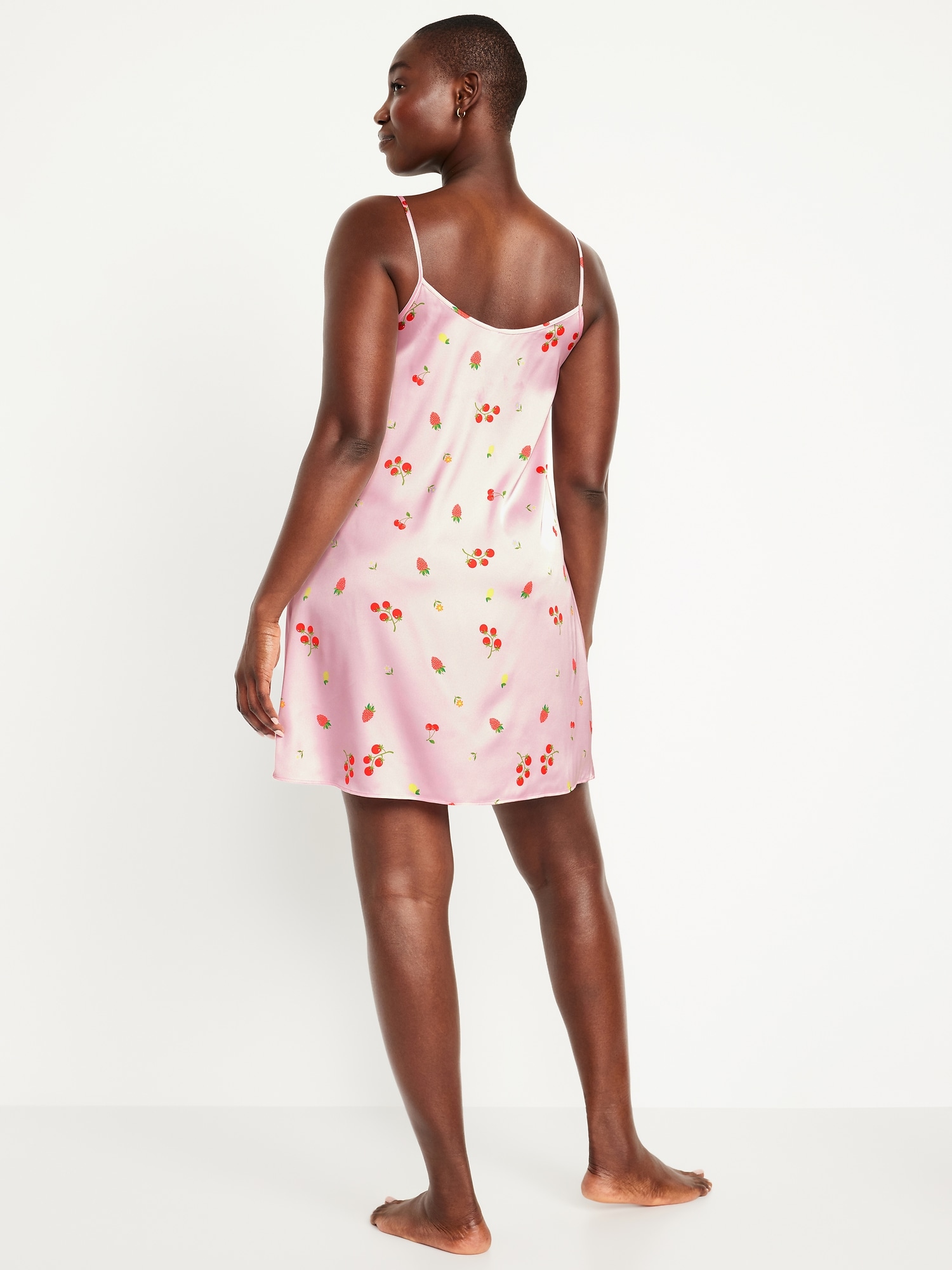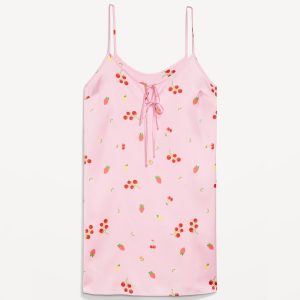 Tie-Front Satin Nightgown: tie-front scoop neck, spaghetti straps, keyhole opening at center front, darted bust, #766746