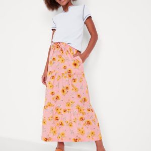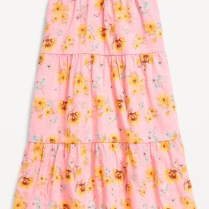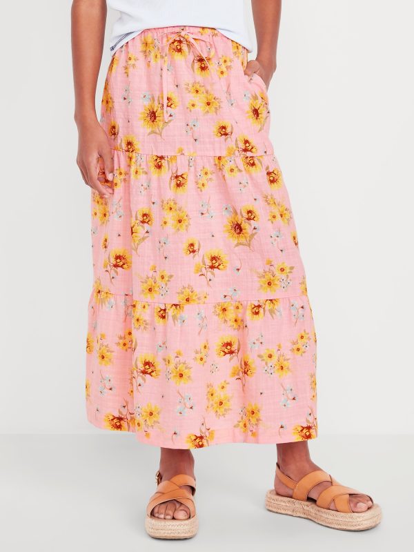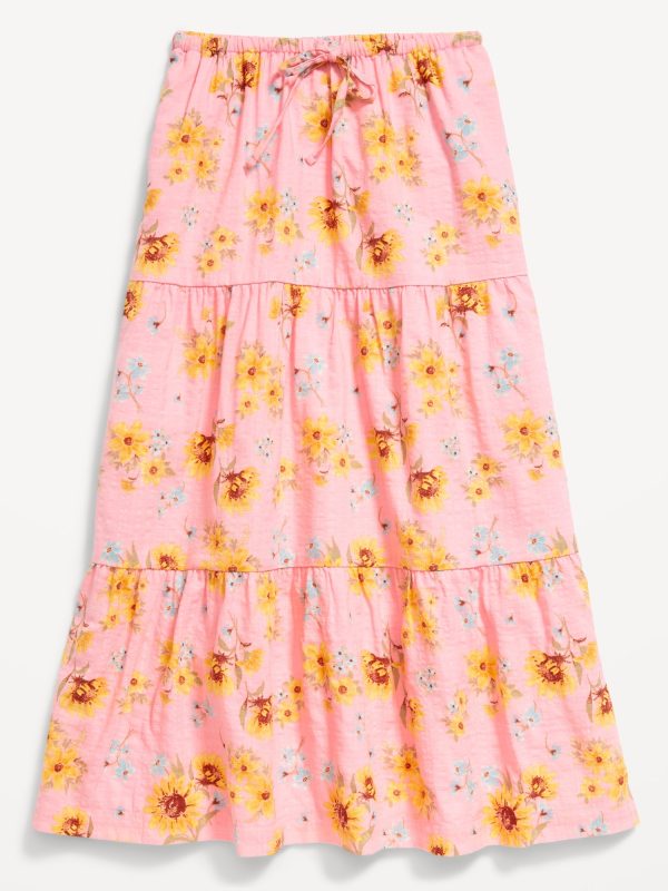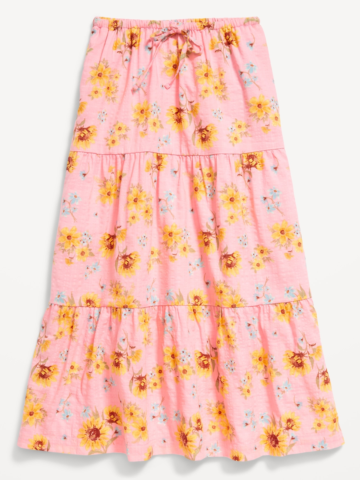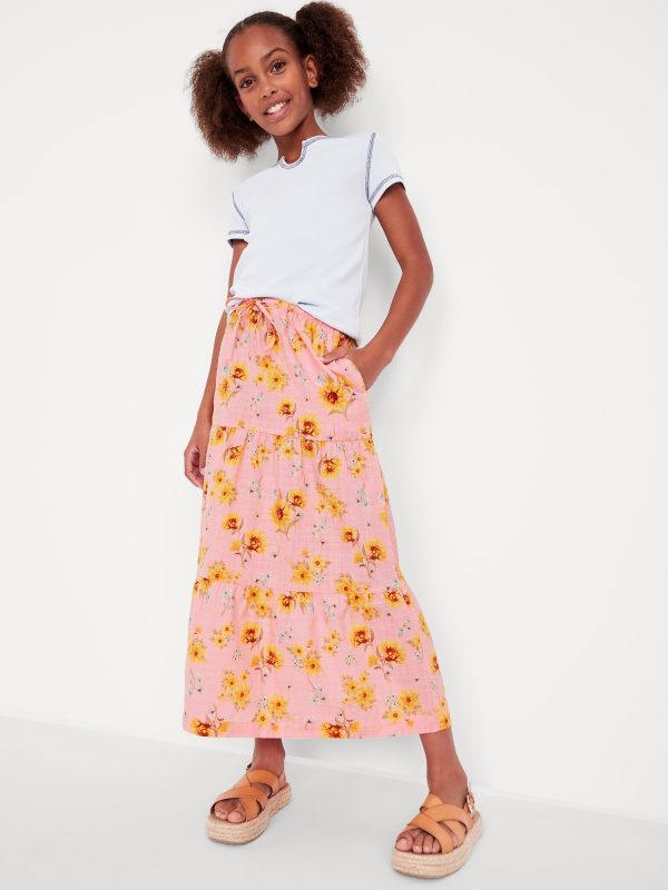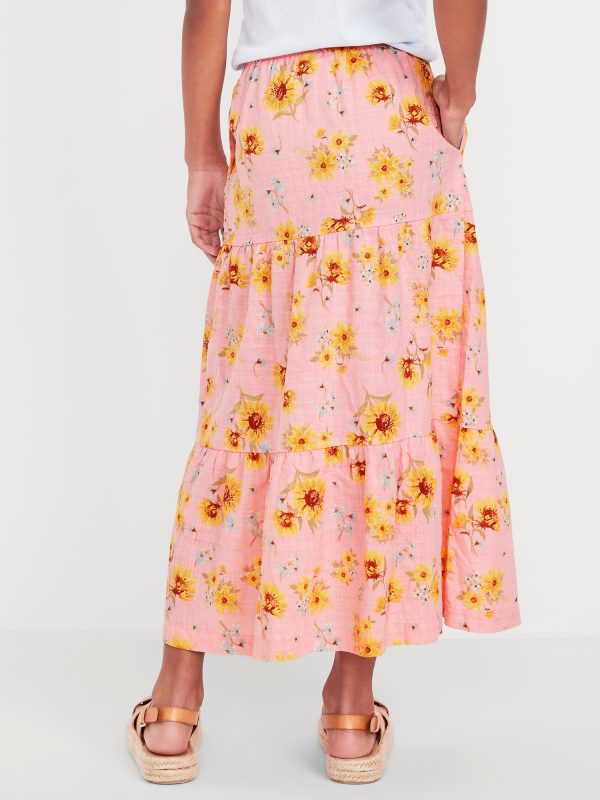 Tiered Swing Midi Skirt for Girls: elasticized waistband, functional drawstring, tiered, on-seam side pockets, all-over print in select colors, #690950