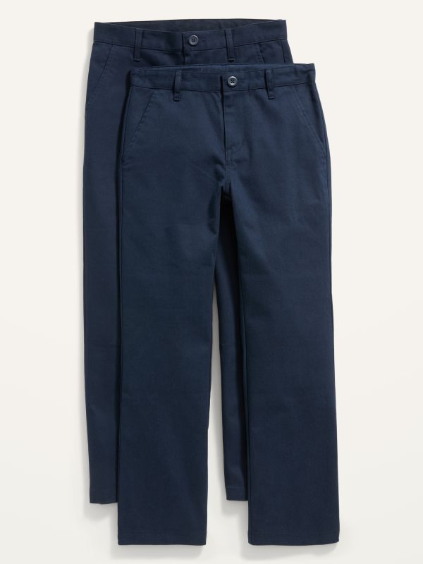 Uniform Built-In Flex Straight Pants 2-Pack For Boys: Interior adjustable waistband expands for a perfect fit., Hook-and-bar closure with decorative button in sizes 5-8; regular button closure in sizes 10-18., Zip fly., Flat front., Diagonal on-seam pockets in front; welt pocket at back right., Reinforced knees for added durability., Soft cotton twill., Engineered with innovative Built-In Flex stretch technology. Equal parts comfort & movement., #692982
