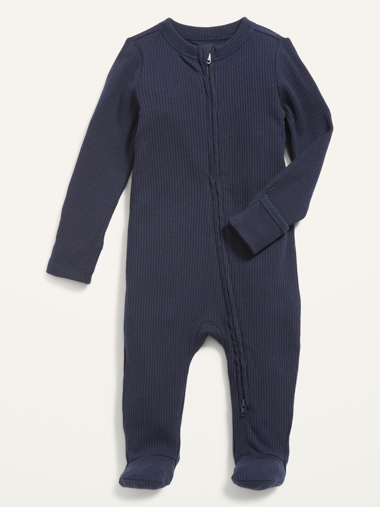 Unisex 2-Way-Zip Sleep & Play Rib-Knit Footed One-Piece for Baby