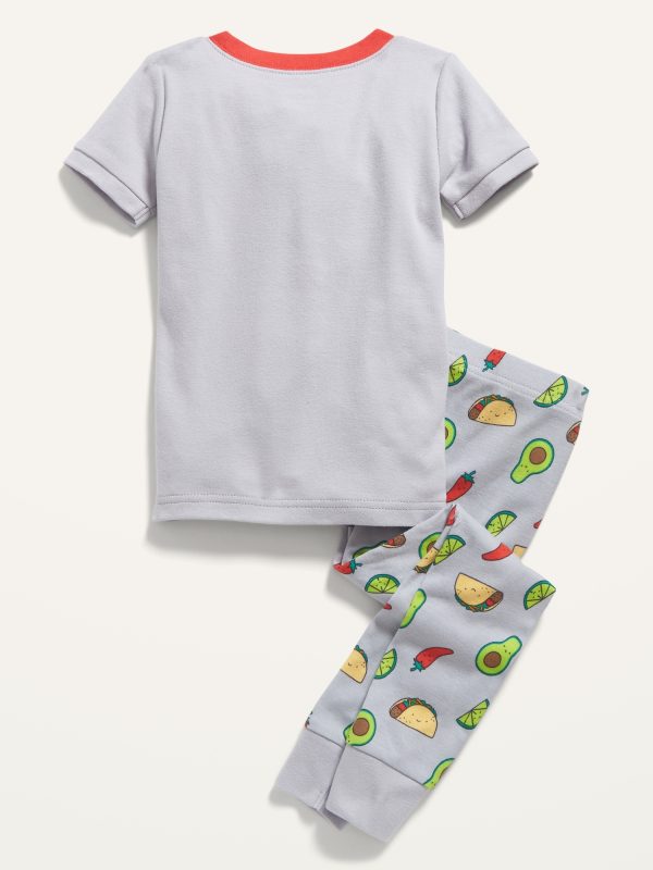 Unisex "Let's Taco 'Bout It" Pajama Set for Toddler & Baby: rib-knit crew neck, short sleeves, pajama bottoms have elasticized waist, rib-knit cuffs, all-over print, #892275
