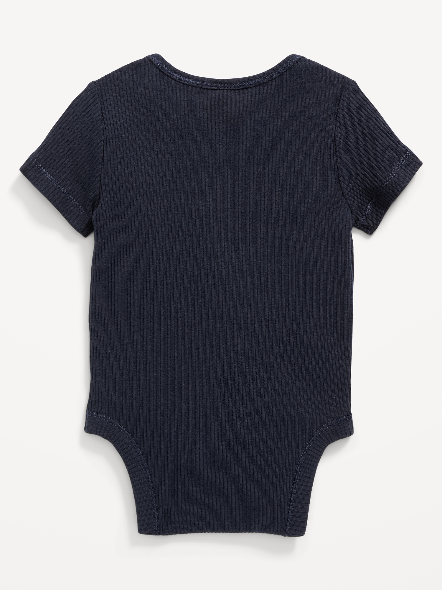 Unisex Rib-Knit Bodysuit for Baby: rib-knit envelope neckline, short sleeves, snaps along inseam, all-over print, #688109
