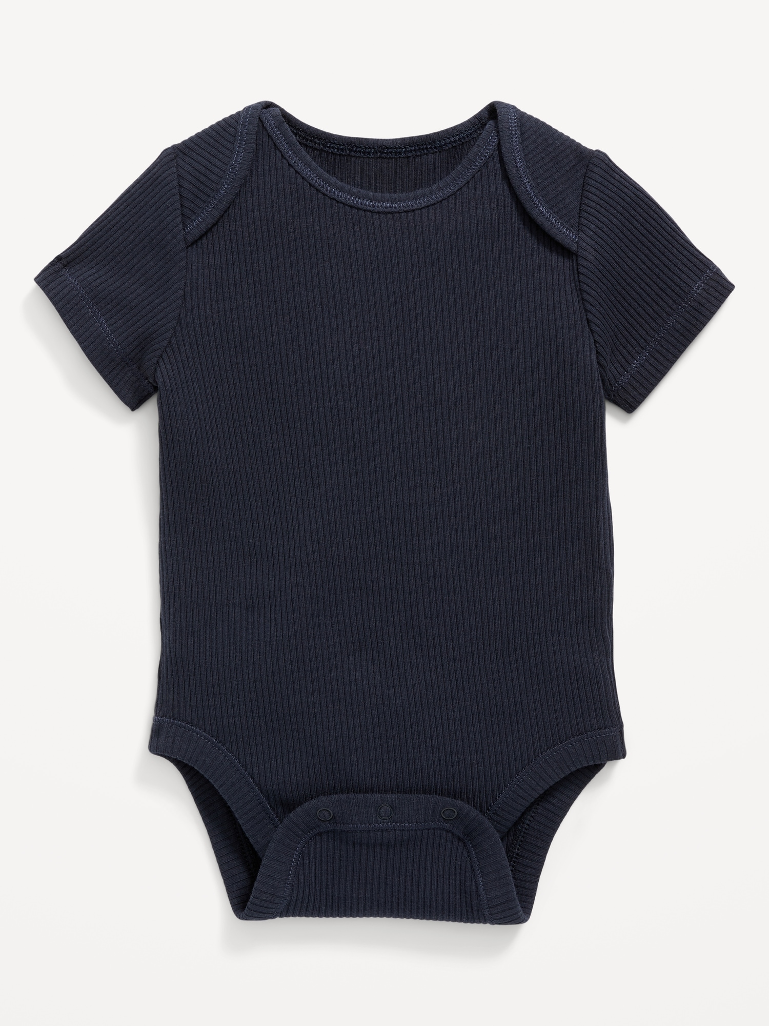 Unisex Rib-Knit Bodysuit for Baby: rib-knit envelope neckline, short sleeves, snaps along inseam, all-over print, #688109