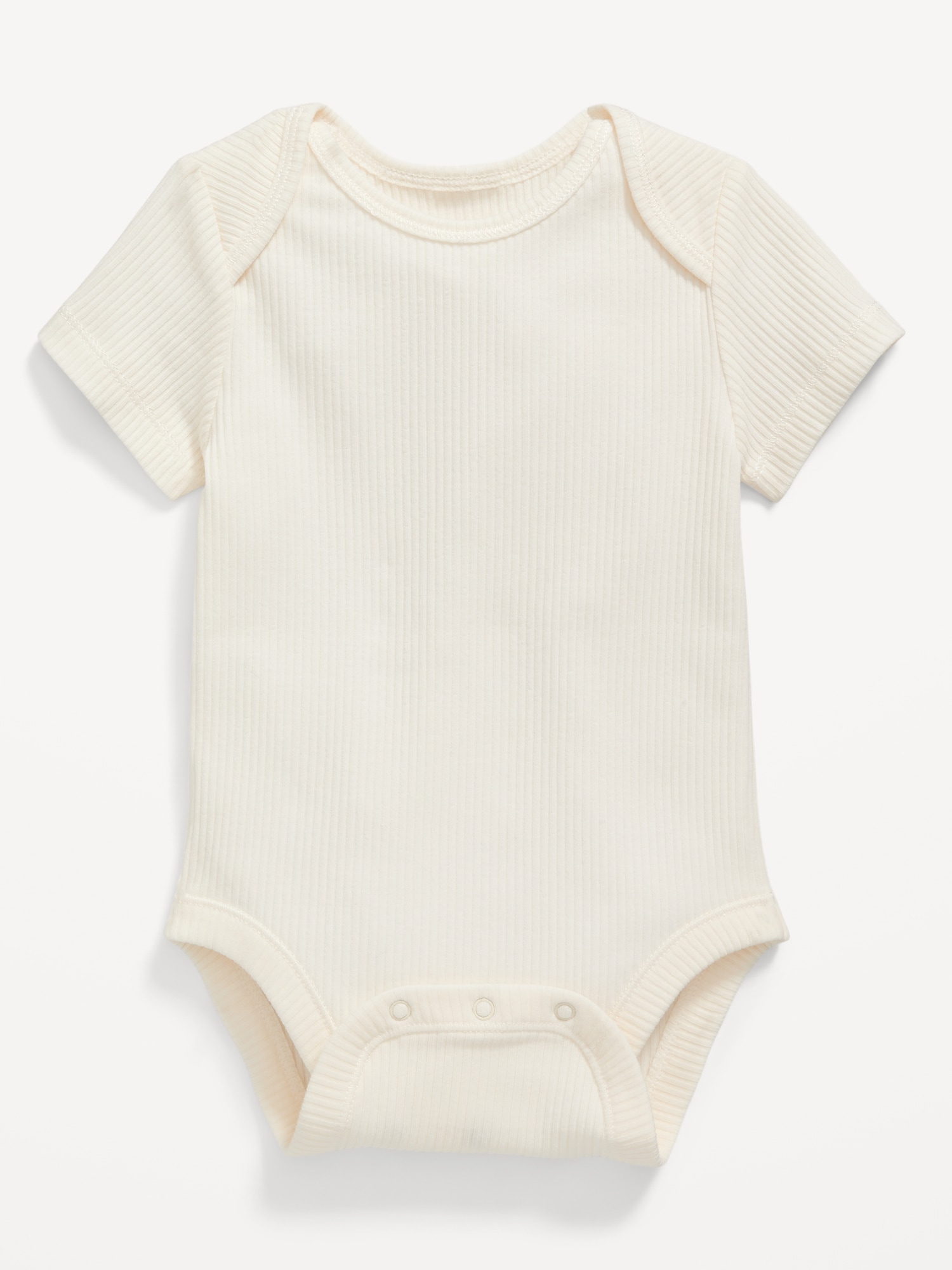 Unisex Short-Sleeve Bodysuit for Baby: rib-knit envelope neckline, short sleeves, snaps along inseam, all-over print, #688109